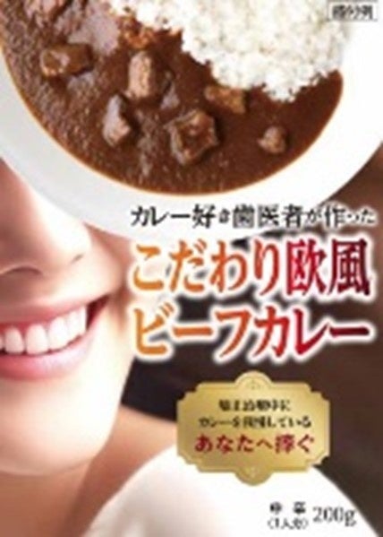 ハウス食品の子会社と協業して開発したユニークなレトルトカレー。野菜やフルーツの甘みと程よいスパイス感、欧風カレーベースの深みのある豊かな味わいが特徴。矯正器具にも着色しないため、歯科矯正中でも存分にカレーを楽しめると好評です。