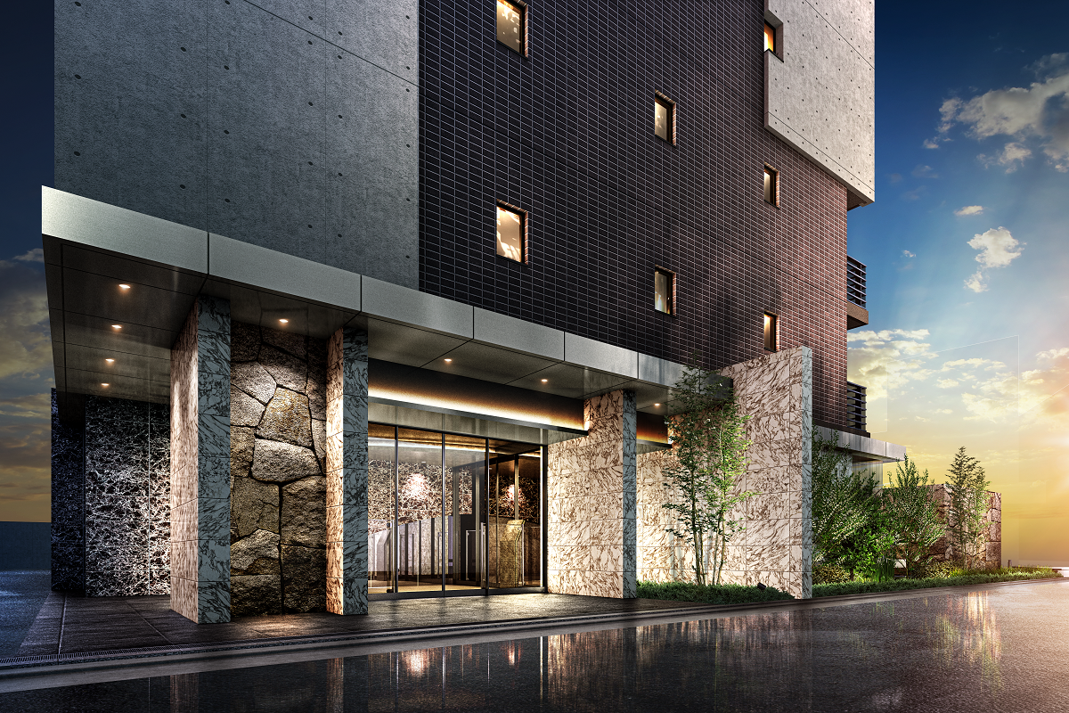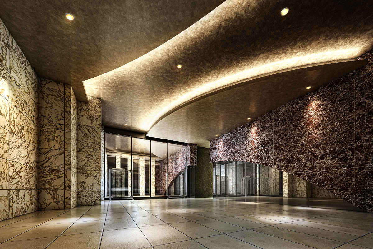 設計コンセプトは、都市の活性化を図る先進的なモダン建築を「岩国」という場所に築くということ。街の活性化に寄与する建築が必要だと考え、ファサードは外観と違う明るい石調のマテリアルを使い、華やかさと高級感を演出しました。先進を感じさせながら街の雰囲気に溶け込んでいくイメージを造形しました。