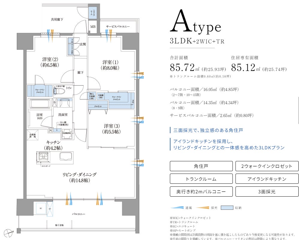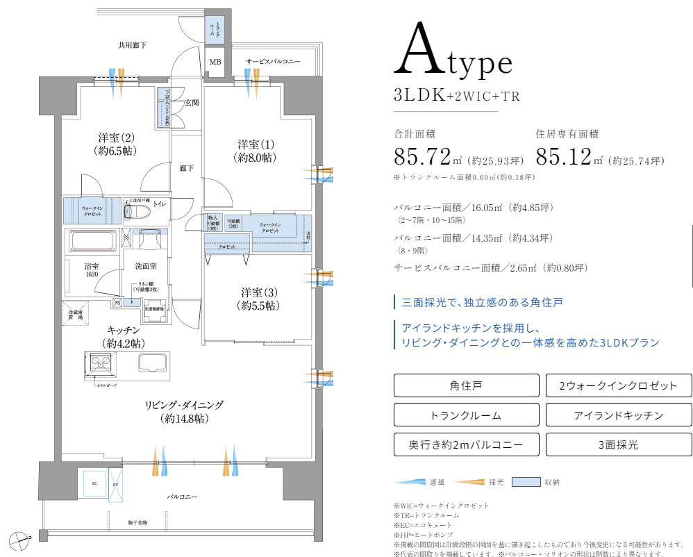 住居専有面積:68.32㎡~85.12㎡