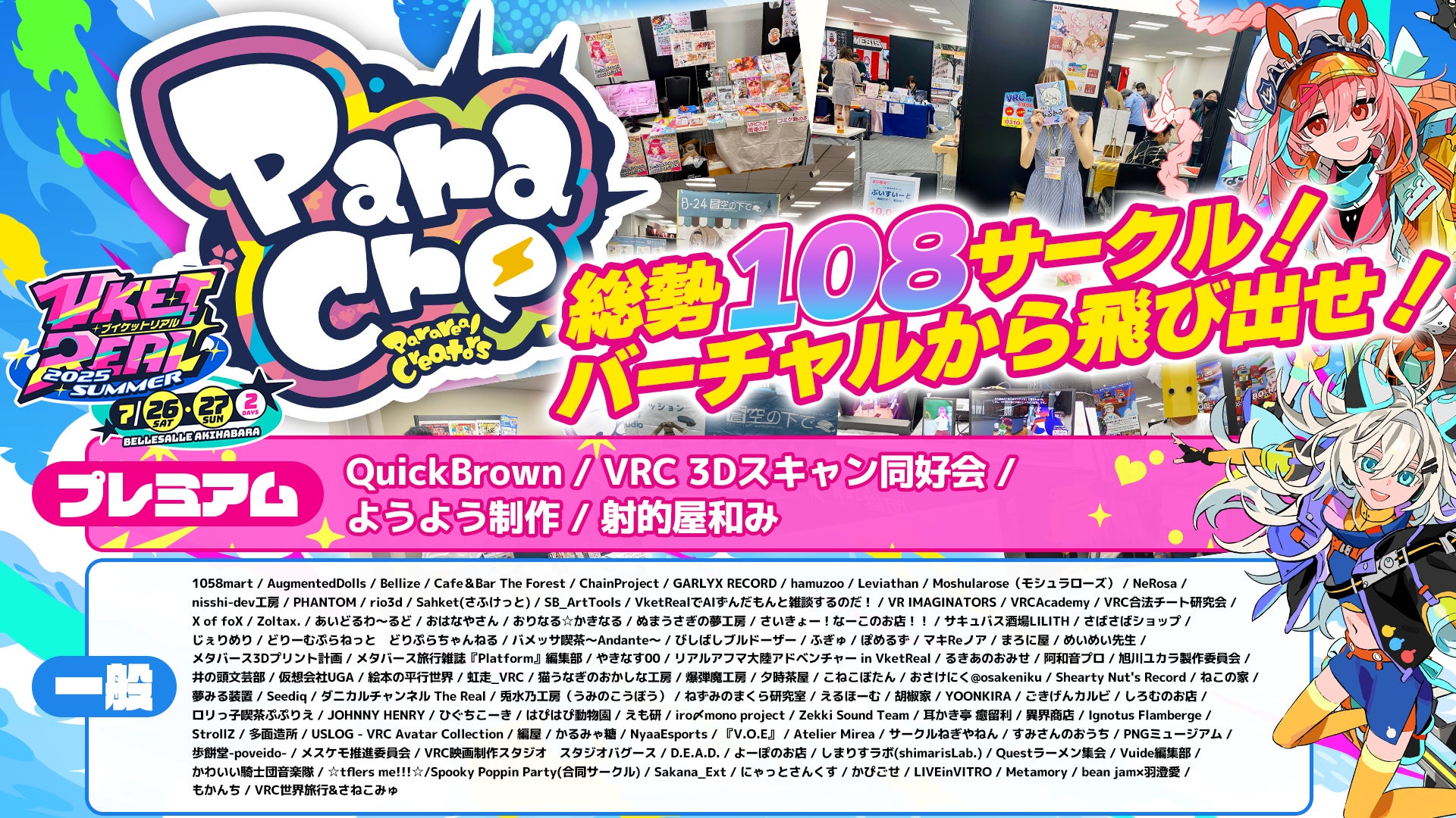 『VketReal 2025 Summer』では、バーチャル⇔リアルを躍動する「パラリアルクリエイター」の応募が過去最多となりました。その中から歴代最多となる108サークルが、ベルサール秋葉原地下1階(有料チケットエリア)に集結します。