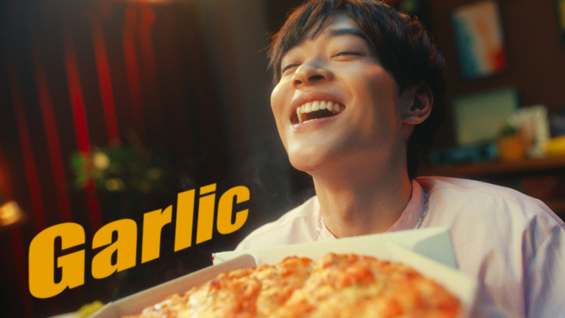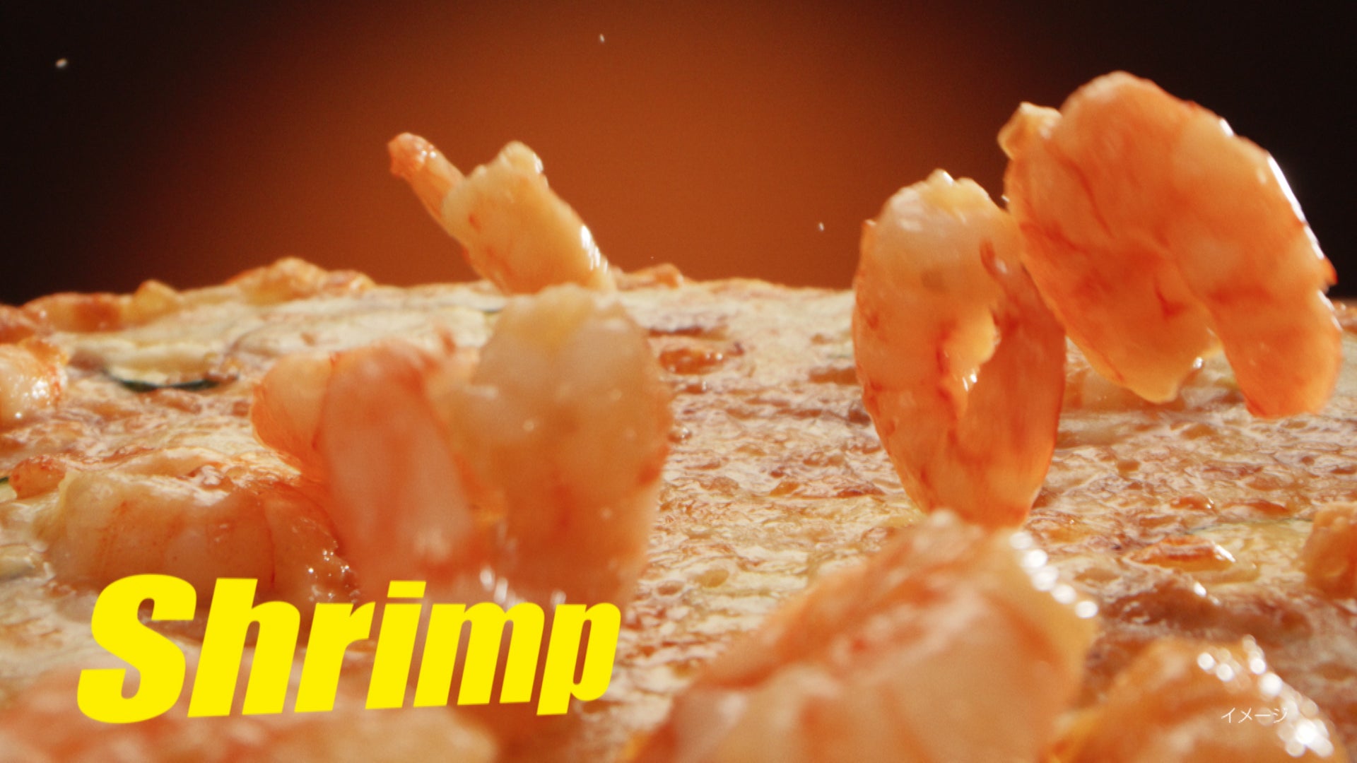 『大海老のガーリックシュリンプ』にやみつきの仲良し4人組が、「大海老ぷりぷリシュリンプ、やみつきの香りガーリック♪爽やかさっぱりレモン♪」と、『大海老のガーリックシュリンプ』のやみつきになる魅力を踊って唄って楽しく表現します。美味しそうなピザに満足気にかぶりつく表情は、まさに「やみつき!」です。