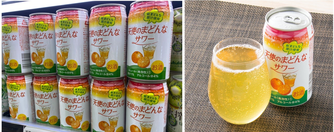 (写真左)「天使のまどんなサワー」店頭での販売の様子 (画像:フジ提供)
