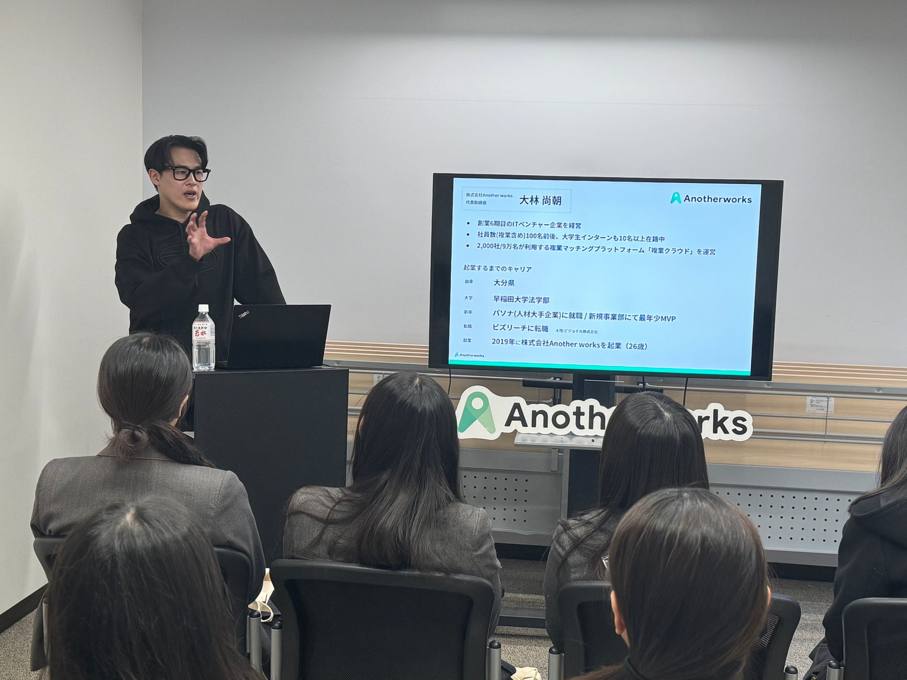 複業したい個人と企業や自治体を繋ぐ、総合型複業マッチングプラットフォーム「複業クラウド」を運営する株式会社Another works(本社:東京都港区、代表取締役:大林 尚朝、以下「Another works」)は、2025年2月19日に福岡女子商業高等学校(所在地:福岡県那珂川市、校長:柴山翔太)の修学旅行生15名の企業訪問を受け入れました。