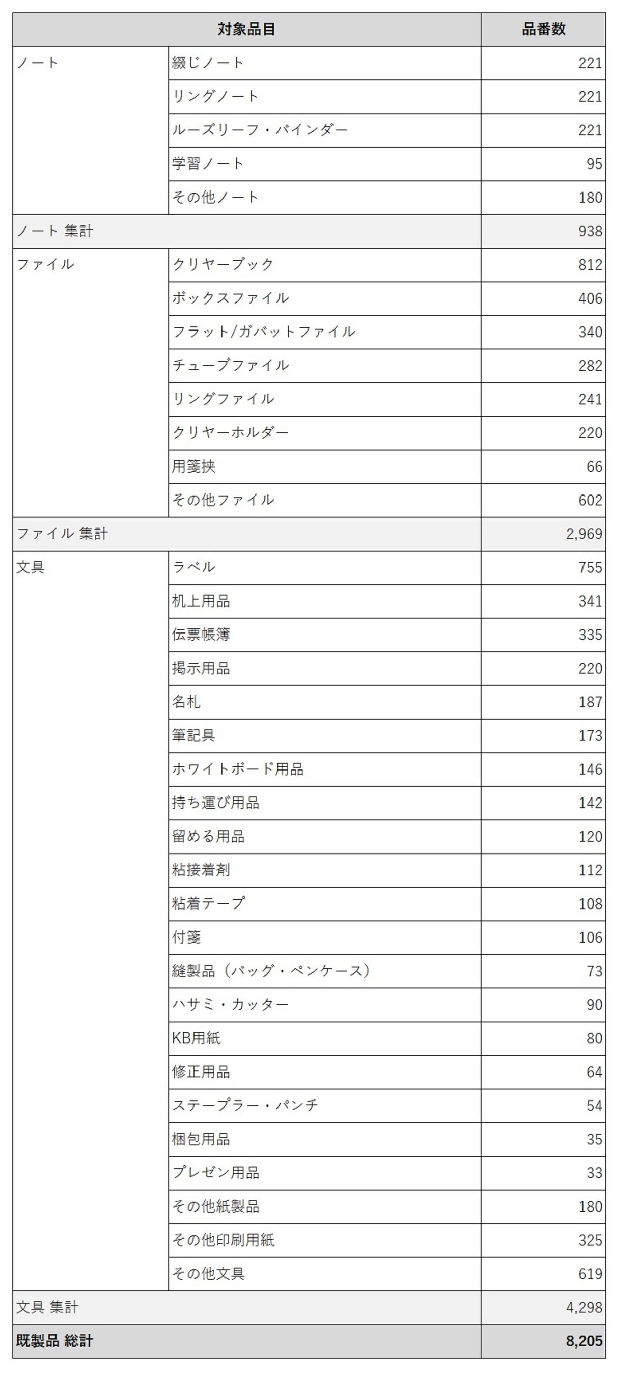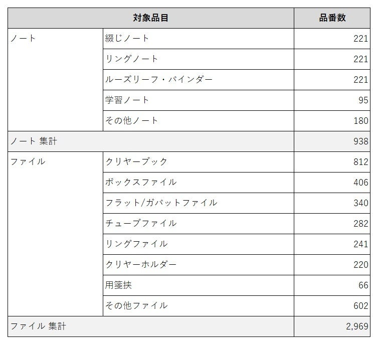 ○対象製品: ノート製品・ファイル製品・文具製品 35品目 8,205品番