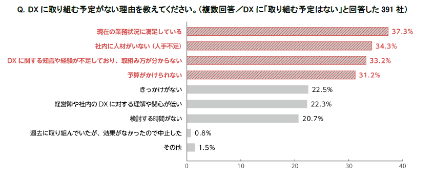 DXに取り組む予定がない理由 1位「現在の業務状況に満足している」