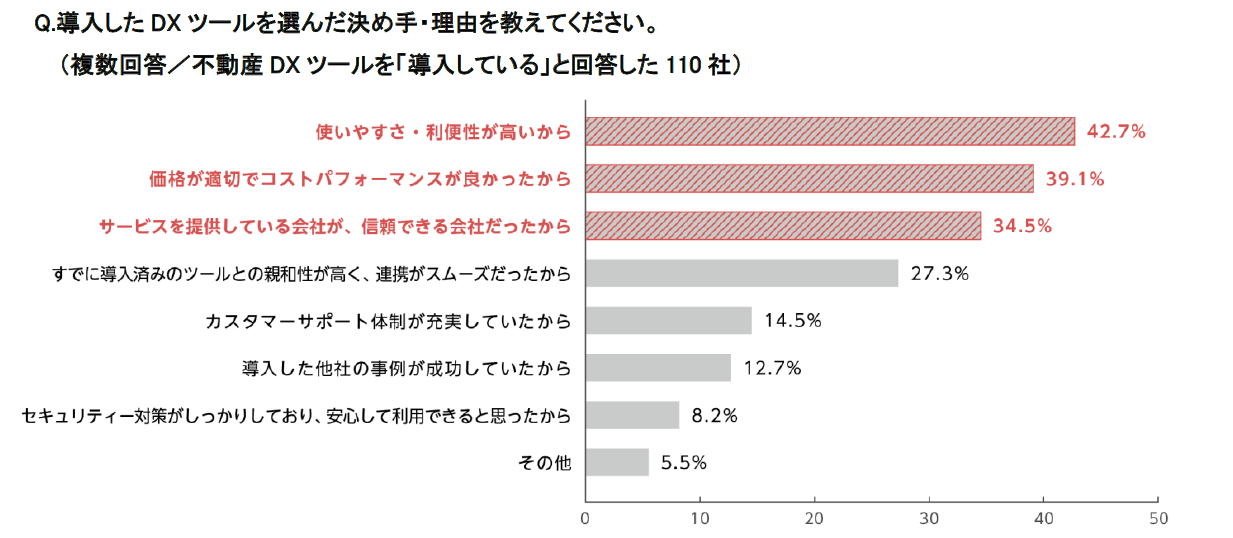 DXツールを選んだ決め手は、「使いやすさ・利便性が高いから」 42.7%