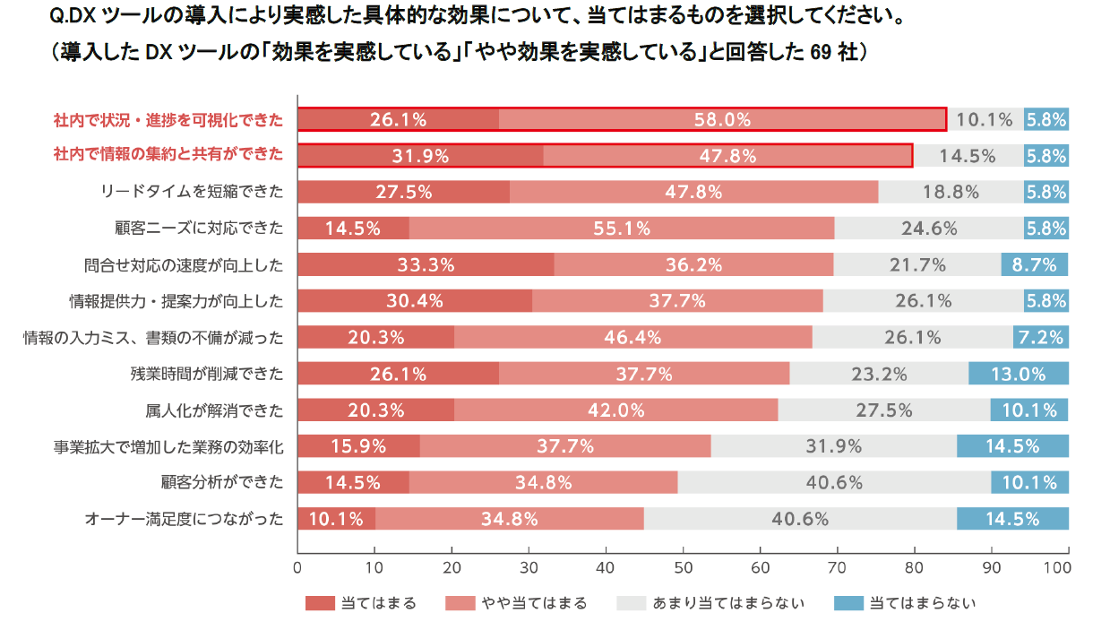 DXツール導入により実感した効果1位 「社内で状況・進捗を可視化できた」