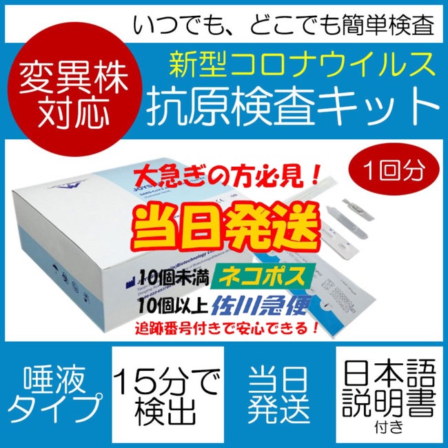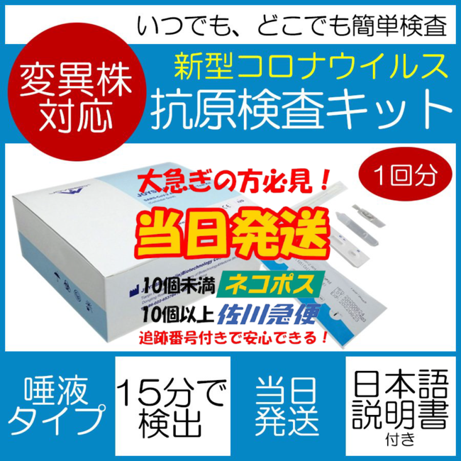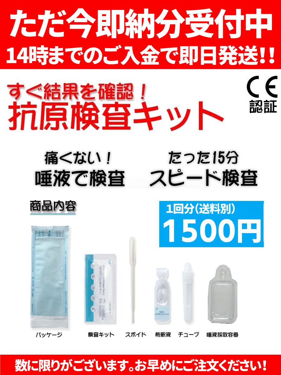 気軽に検査ができる唾液採取タイプの抗原検査キットです。16時までのご注文で当日発送対応致します。