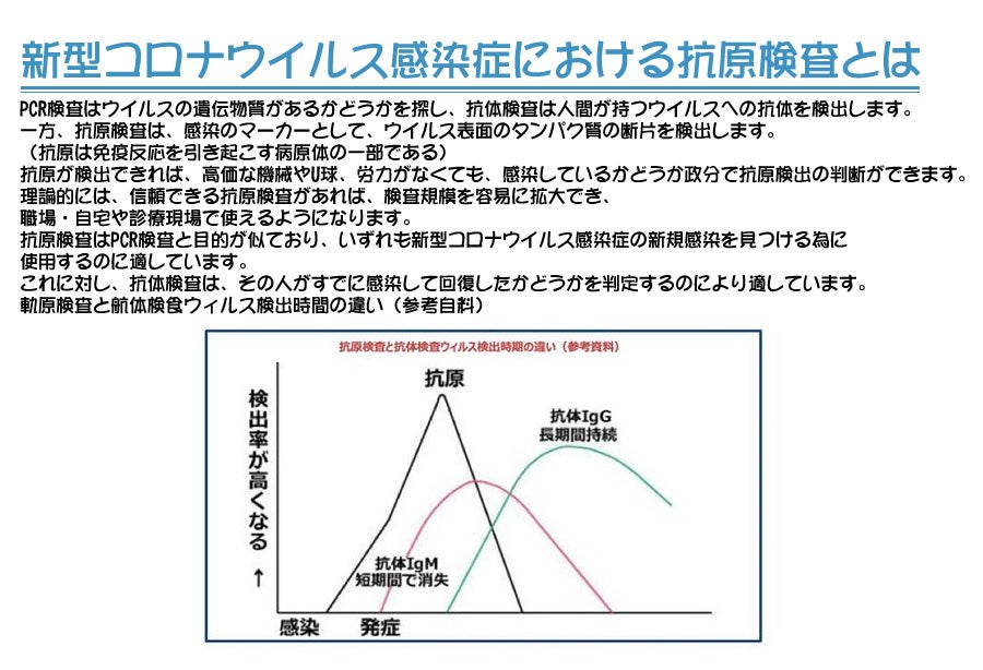 PCR検査に比べ検出率は劣りますが、専門スタッフや特別な検査機器が不要で、約15分~20分程度の少ない時間で結果が出るのがメリットです。