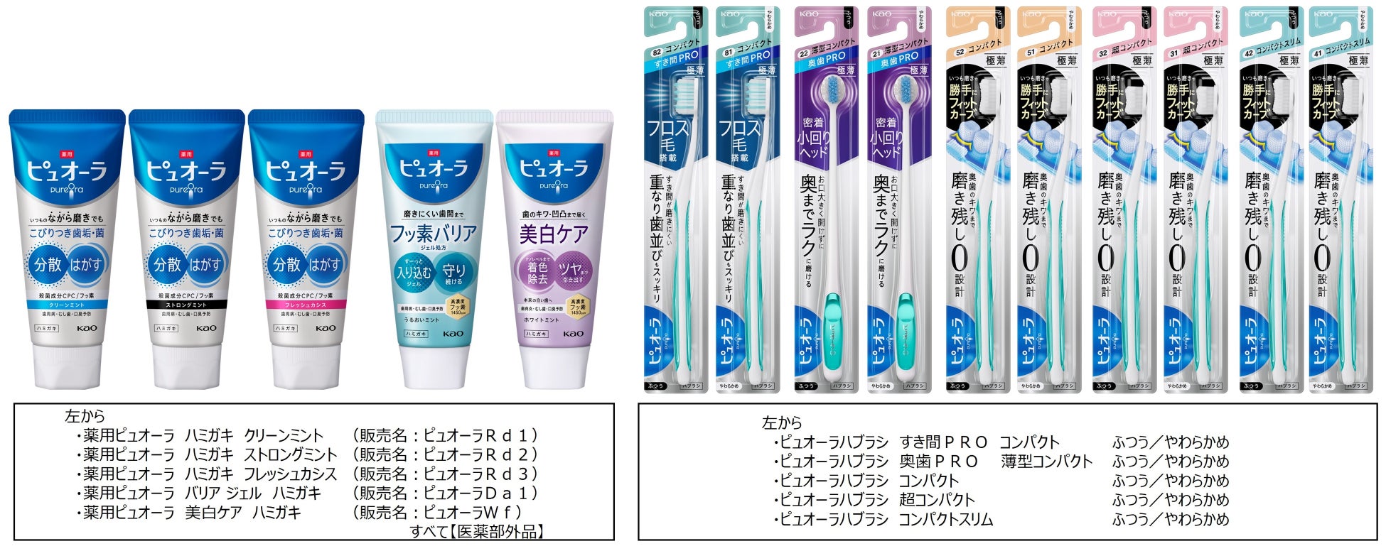 「ピュオーラ」シリーズは、上記商品に加え、ハミガキは「薬用ピュオーラ バリア ジェル ハミガキ」「薬用ピュオーラ 美白ケア ハミガキ」をラインアップ。ハブラシは「ピュオーラハブラシ 奥歯PRO 薄型コンパクト」「ピュオーラハブラシ (コンパクト/超コンパクト/コンパクトスリム)」をラインアップしています。