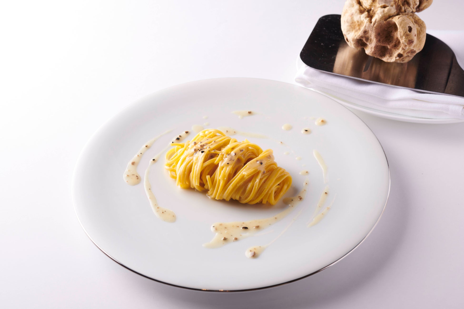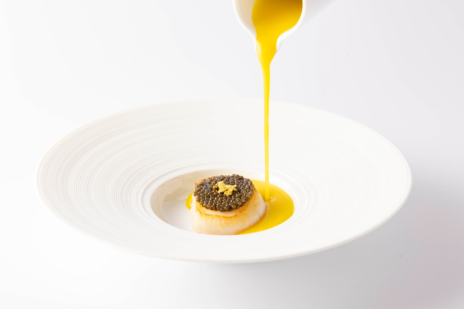 限定メニューでは、ほんのりレアに焼き上げた帆立に、佐賀県産のサフランのソースとキャビアを合わせた一皿や、香り高い白トリュフのタリオリーニ、イタリアでクリスマスのもてなしの料理としても親しまれている、ピエモンテの伝統的なラビオリ「アニョロッティ・デル・プリン」をプロシュートのコンソメスープで仕上げた一皿など、このシーズンならではのあたたかく華やかなメニューをご用意いたします。