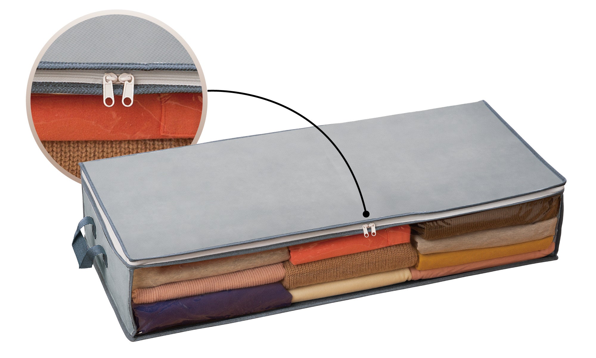 前面部には中身が見えるクリアな窓付きで確認がラクラク。ほこりや汚れからガードするのはもちろん、ベッド下や押入れ・クローゼット上段に置いても、探す手間ナシ!