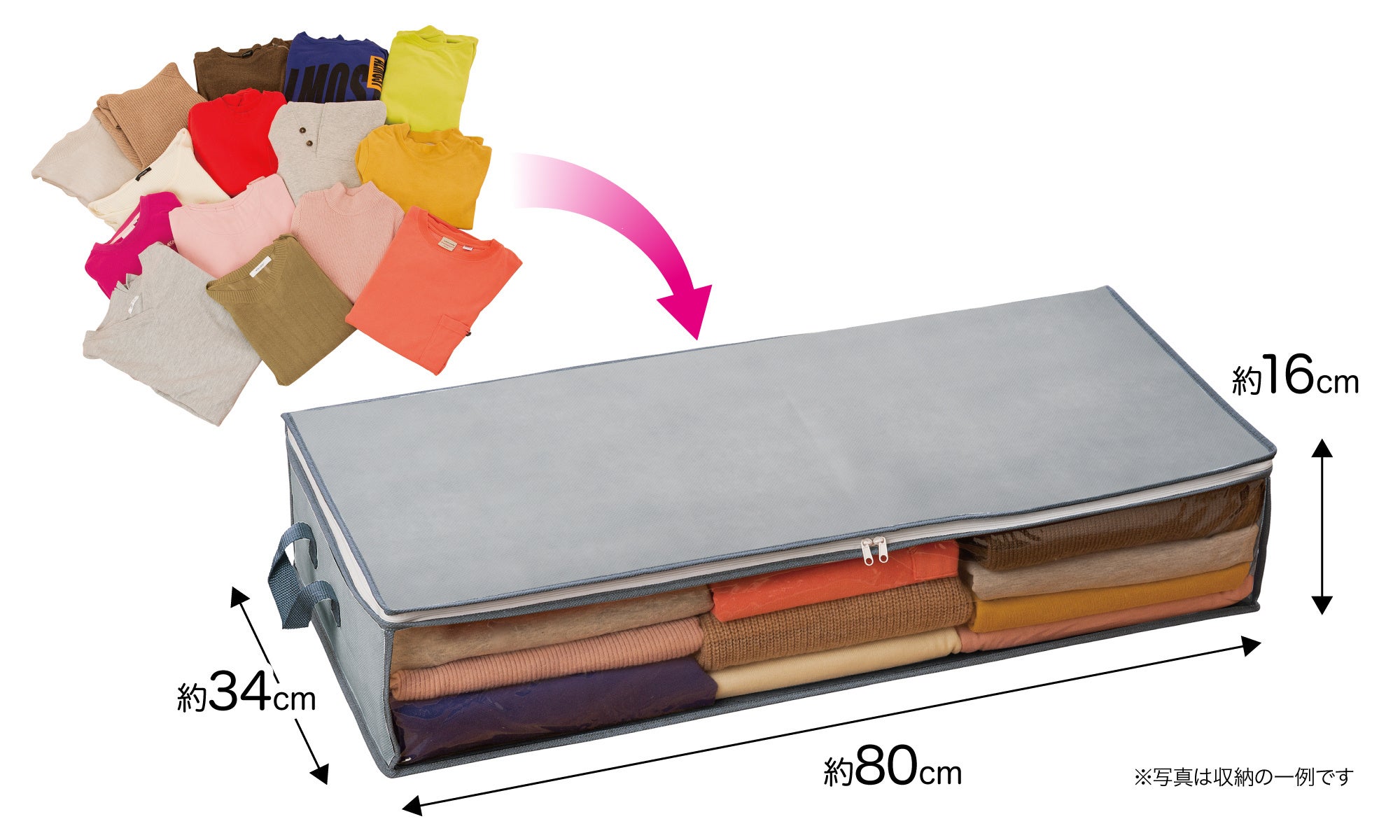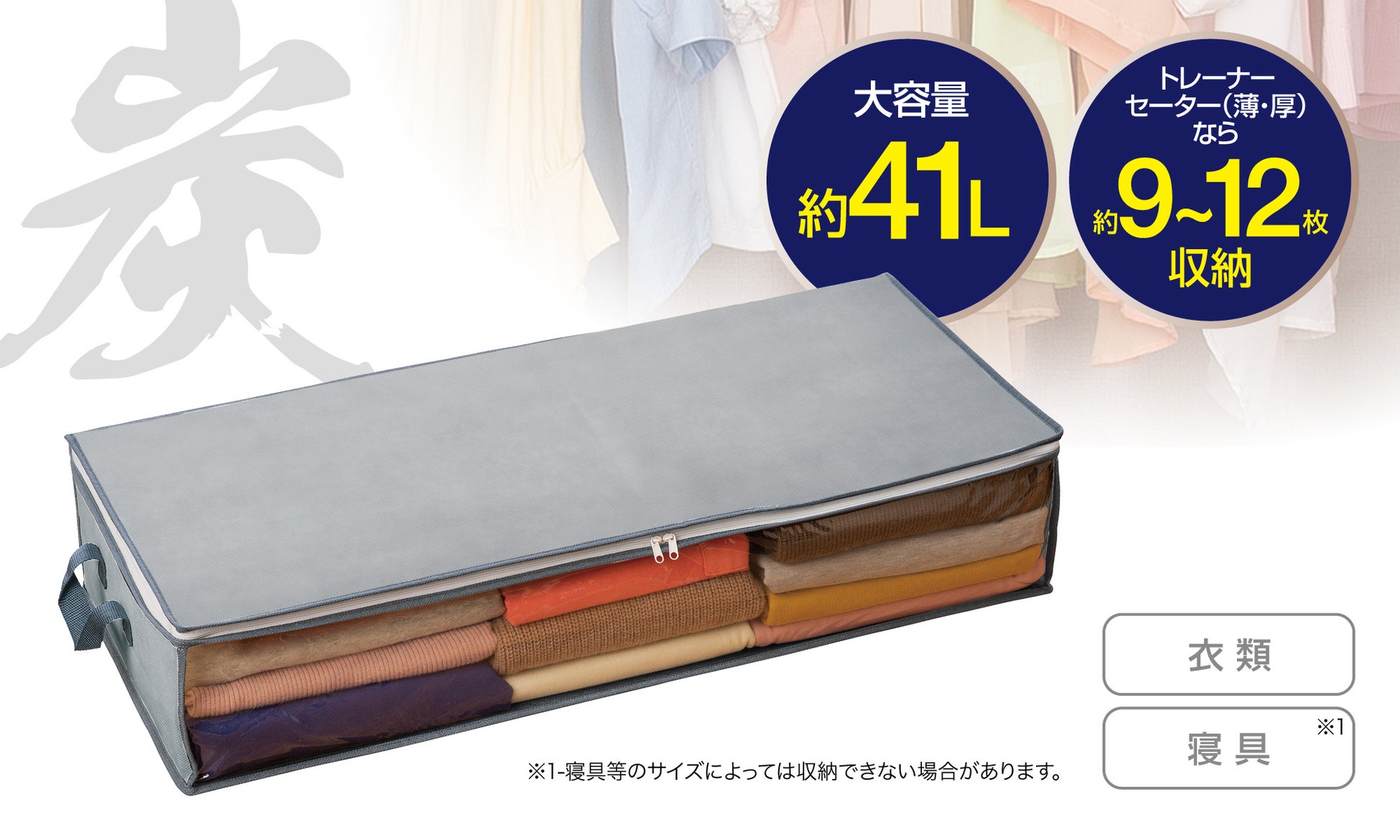 たっぷりの収納できる大容量約41L。季節はずれの衣類やかさばる寝具を整頓して、ベッド下のデッドスペースを収納空間に!