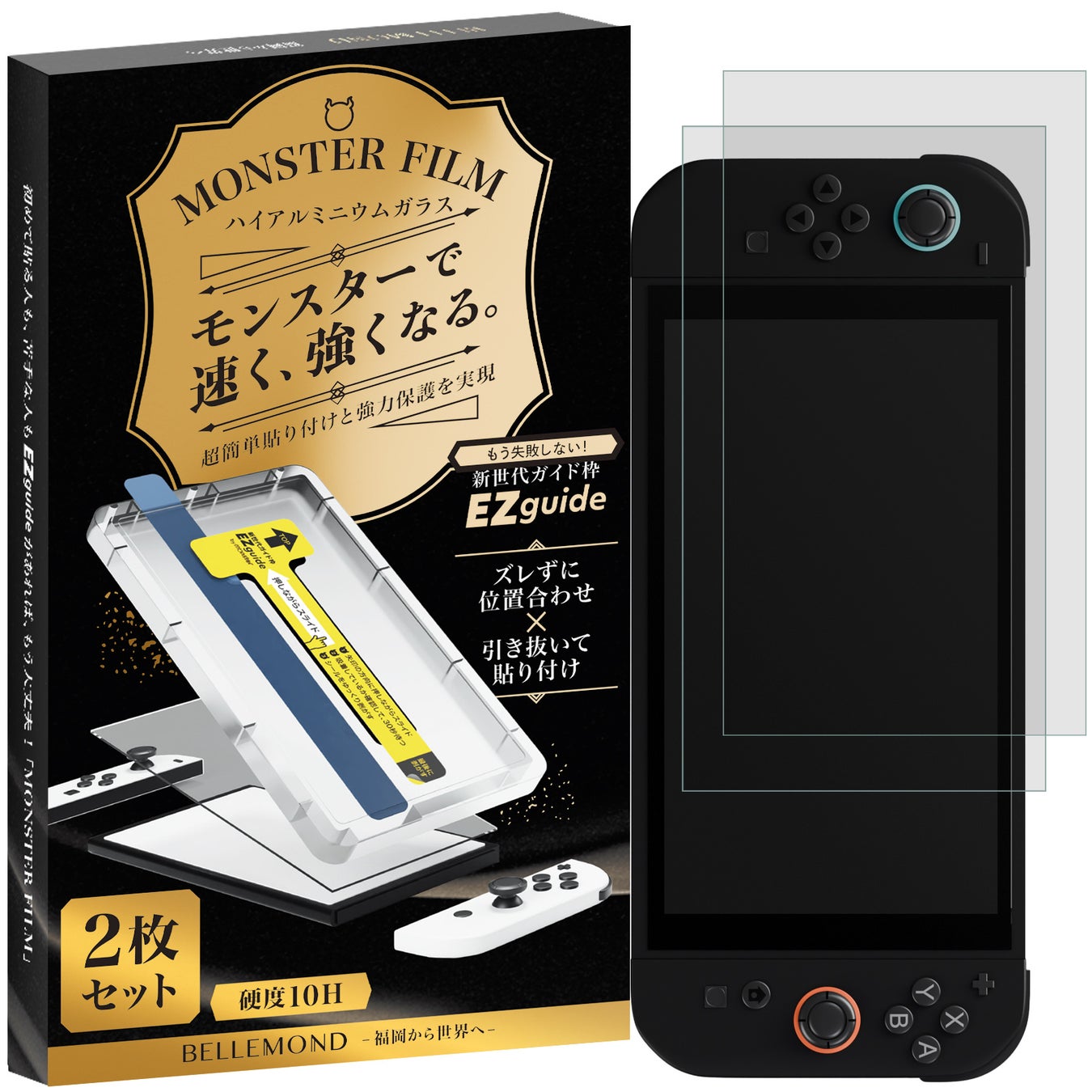 発売日6月5日決定!Nintendo Switch2専用、画面保護フィルム「モンスターフィルム」を販売。ブルーライトカットや反射防止などガイド枠付で3種類。スイッチでの実績を元に、ガラスフィルムを提供