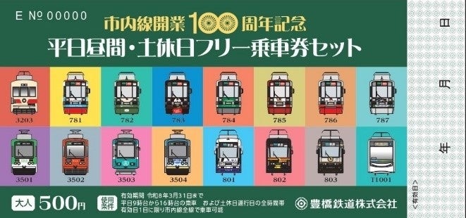 1.記念乗車券「市内線開業100周年記念 平日昼間・土休日フリー乗車券セット」第3期デザインの発売