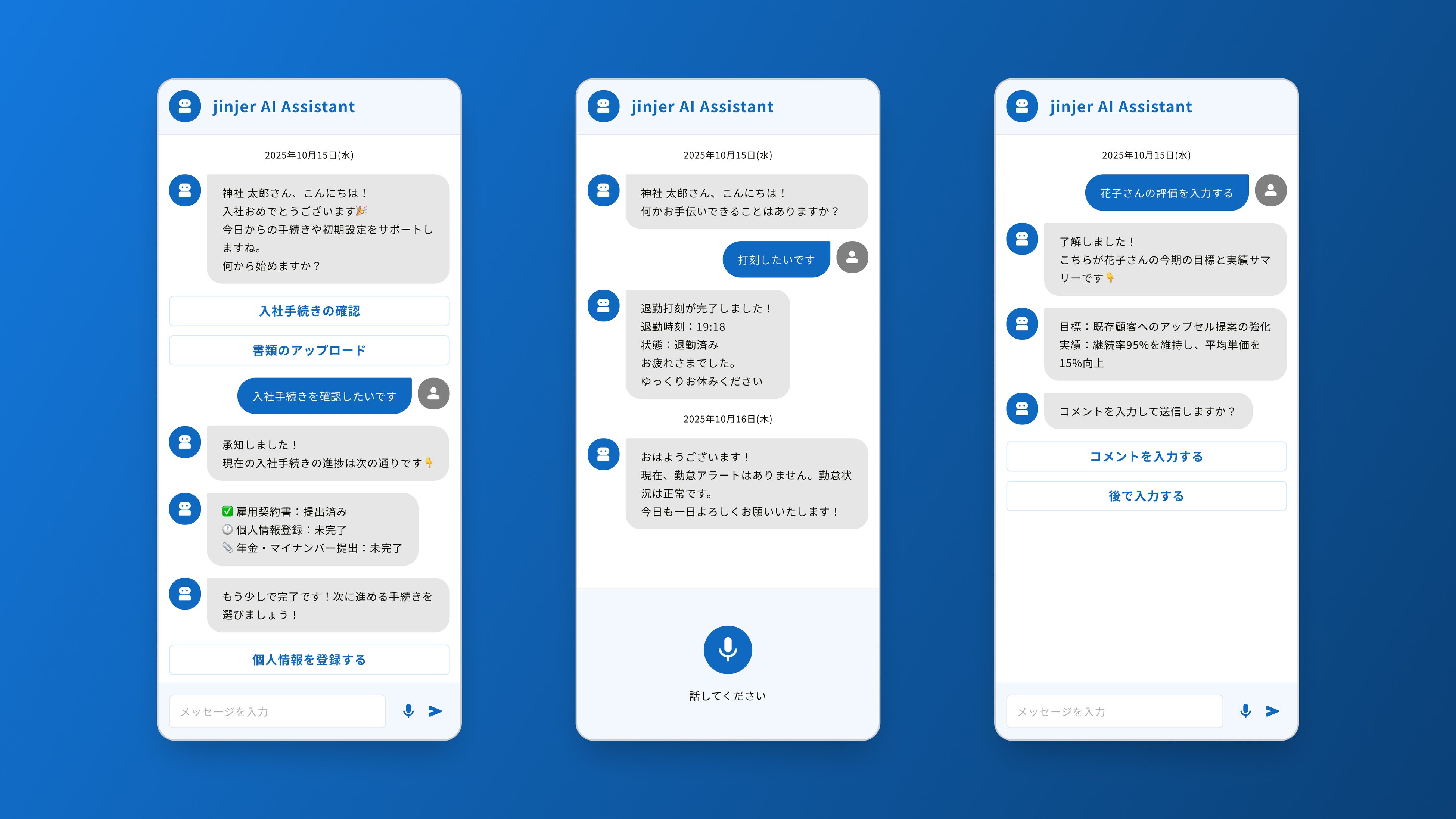 jinjerではミッションとして【人事の「これからの当たり前」をつくり、お客様とともに進化する】を掲げております。まさに今、現在進行形として人事部門の業務内容が変化する中で、統合型人事システムの「ジンジャー」だからこそ実現できるAI-Readyな「正しい人事データ」を活用し、人事部門だけでなく、経営層そして従業員にとっても真に価値のあるAIエージェント機能の提供を開始します。