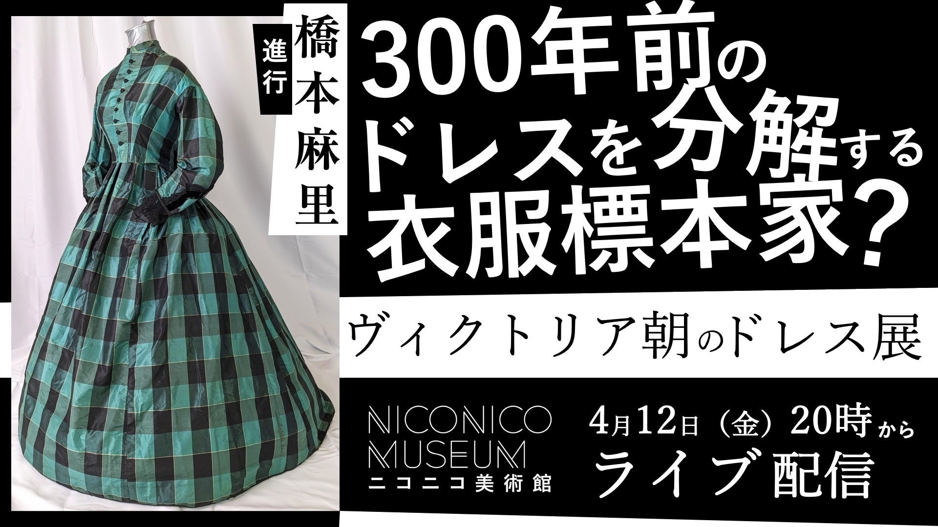 【ニコニコ美術館】300年前のドレスを五感で味わい、歴史を学ぶ人気展覧会「半・分解展 - ヴィクトリア朝のドレス展」4/12 20時~、衣服標本家・長谷川彰良氏と共にニコ生でライブ配信