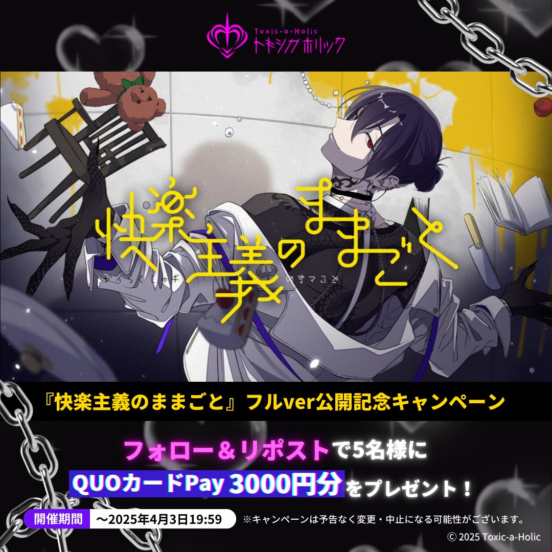 第3弾キャラクターソングとして、毒物男子「チェイン」(CV:白井悠介)が歌う『快楽主義のままごと』のフルverが『Toxic-a-Holic』公式YouTubeチャンネルにて解禁されました。
