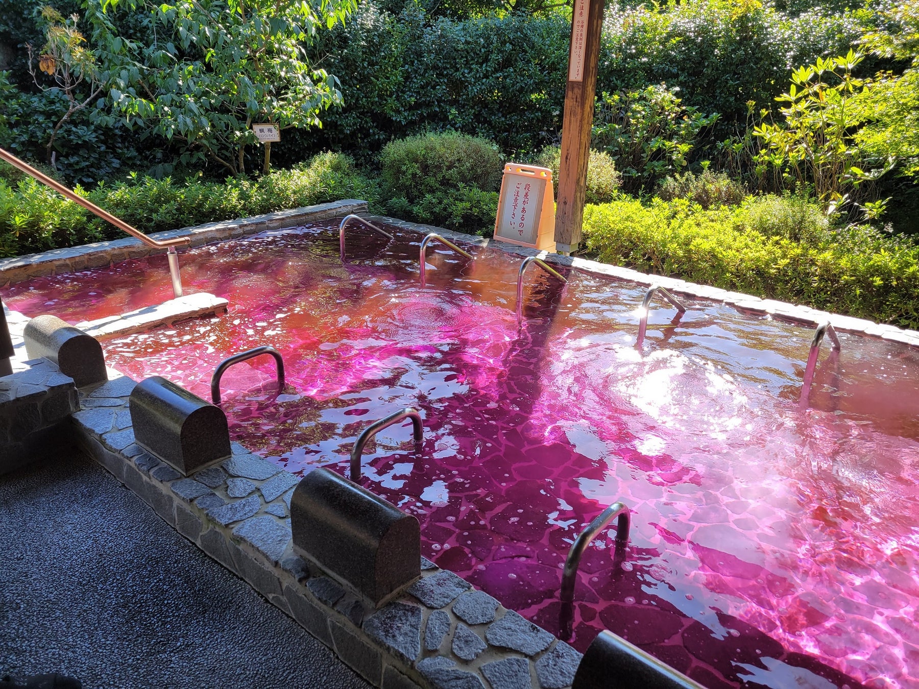 今回はボジョレーヌーボー解禁を記念しまして露天岩風呂にてワイン風呂を初開催する事になりました。