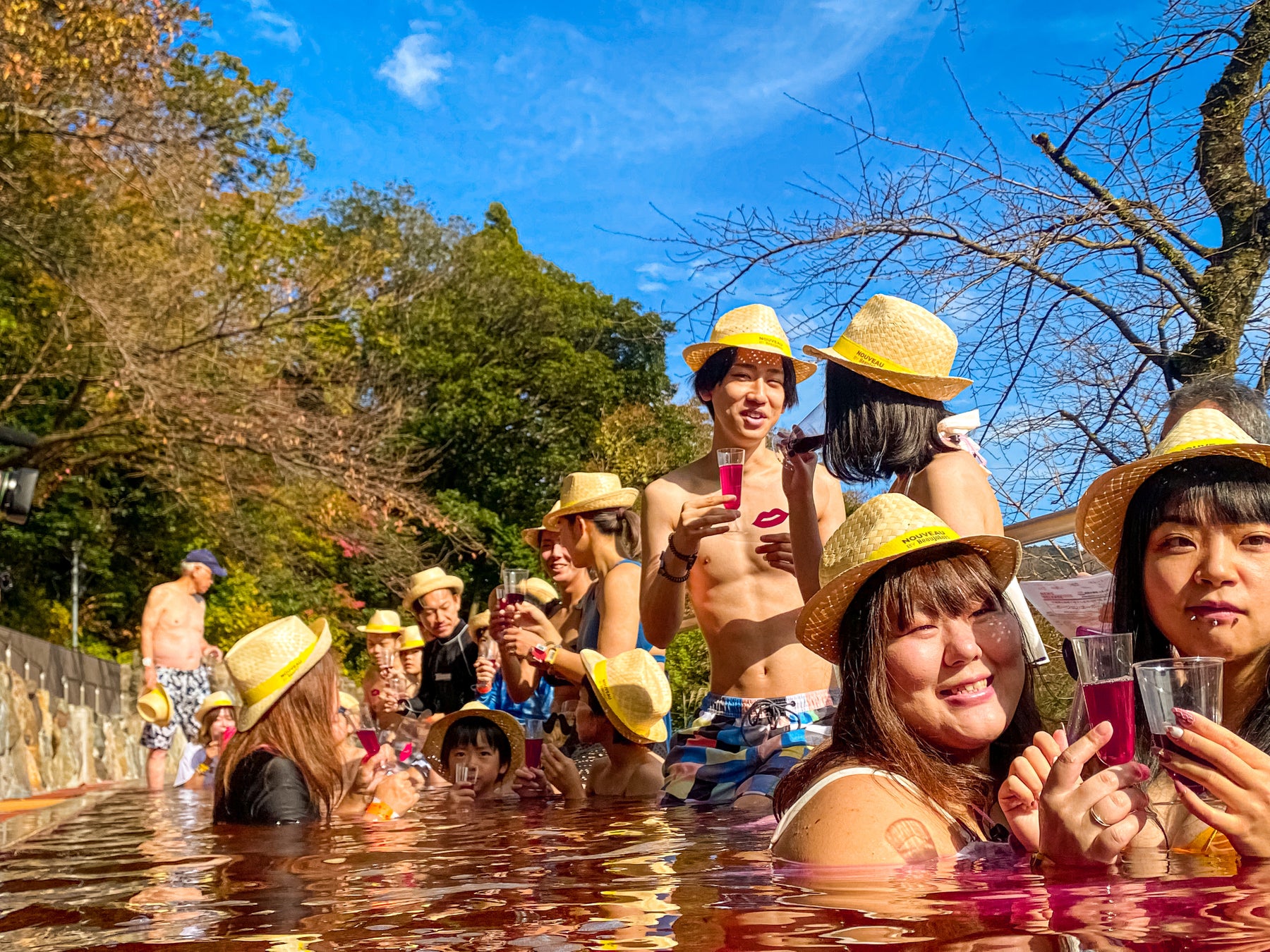 期間中にはボージョレ・ヌーボーを注ぐパフォーマンスに合わせて、秩父産ぶどうをメインに使った兎田ワイナリーのワインを使った秩父ならではのワイン風呂もお楽しみいただけます。