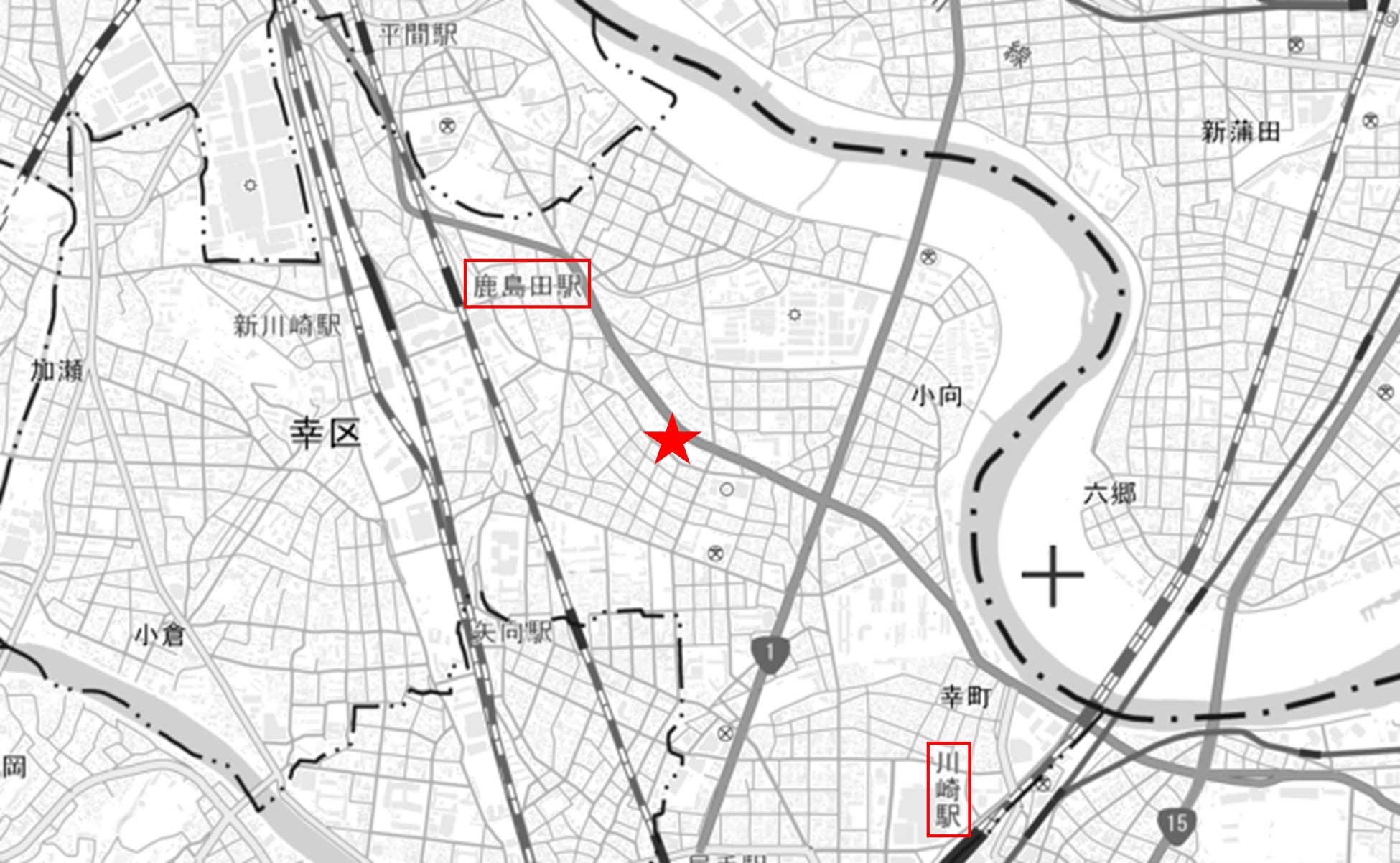 【下平間第三住宅団地マンション建替事業位置図】(国土地理院地図より)