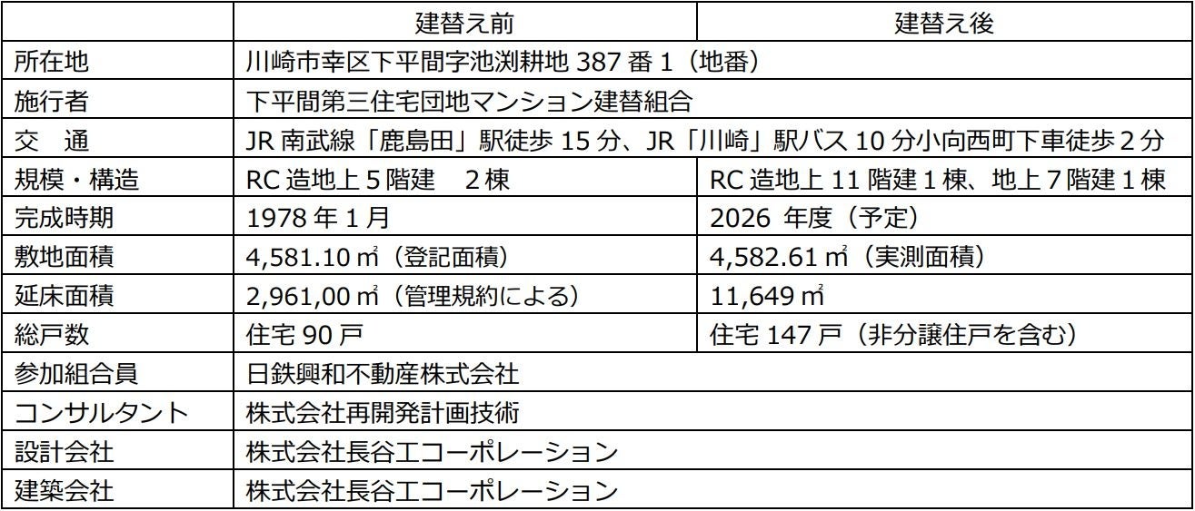 日鉄興和不動産株式会社(本社:東京都港区、代表取締役社長:三輪 正浩)が参加組合員として参画し、下平間第三住宅団地マンション建替組合が施行する「下平間第三住宅団地マンション建替事業(以下「本事業」という)」において、2025年2月28日に着工しましたことをお知らせいたします。