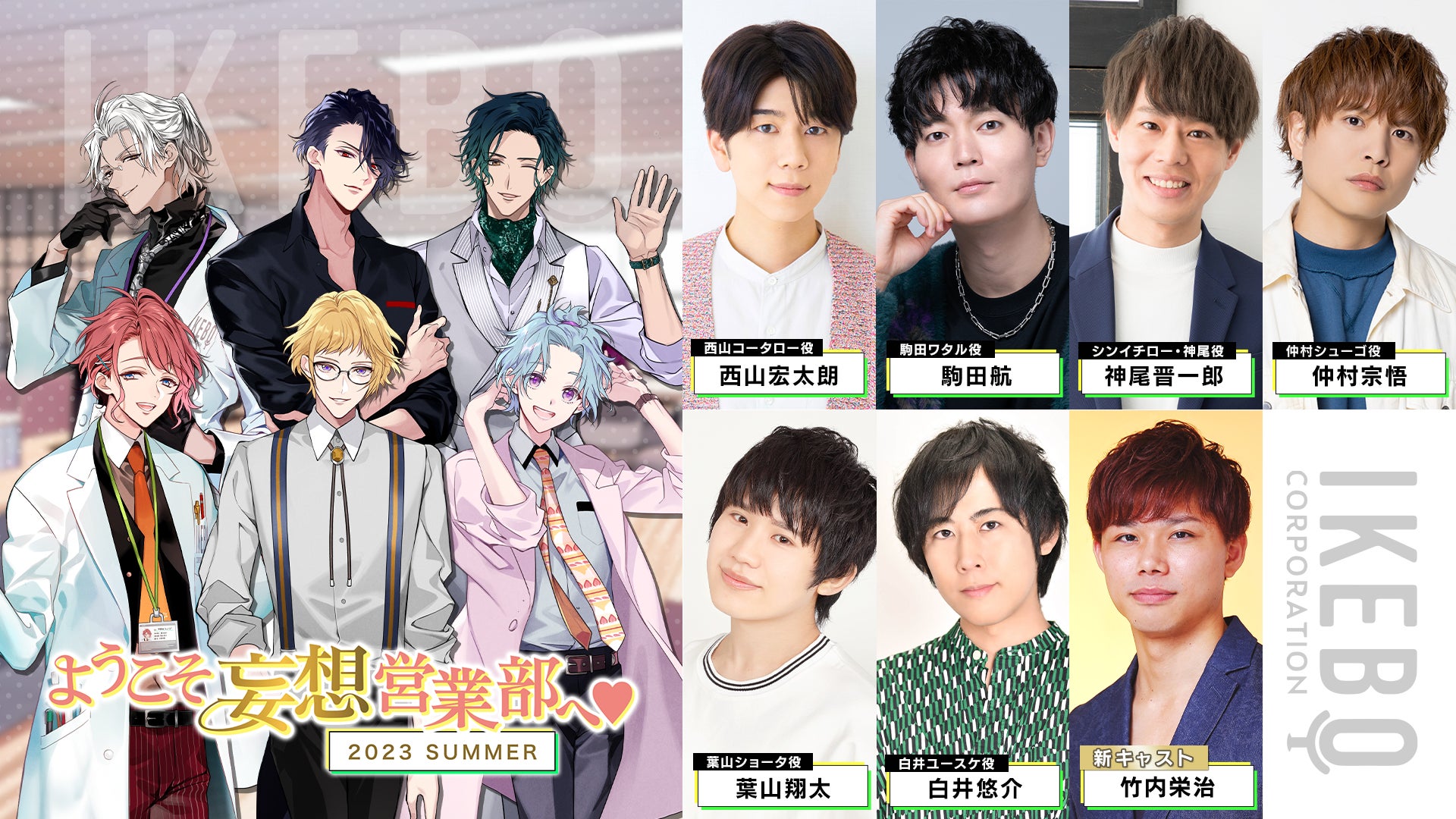 【キャスト・イベント情報解禁】7月2日(日)開催「ようこそ妄想営業部へ♥2023 SUMMER」西山宏太朗、駒田航、神尾晋一郎、仲村宗悟、葉山翔太、白井悠介、[新]竹内栄治、吉田尚記の8名が出演!!