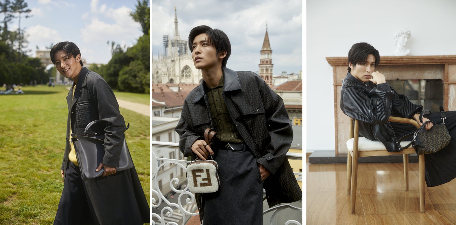 今回、2025年春夏 メンズコレクションのショーに参加するためにミラノを訪れた目黒蓮は、メゾンの個性が際立つフェンディの 最新メンズコレクションを身に纏い、ミラノ市内を散策しました。