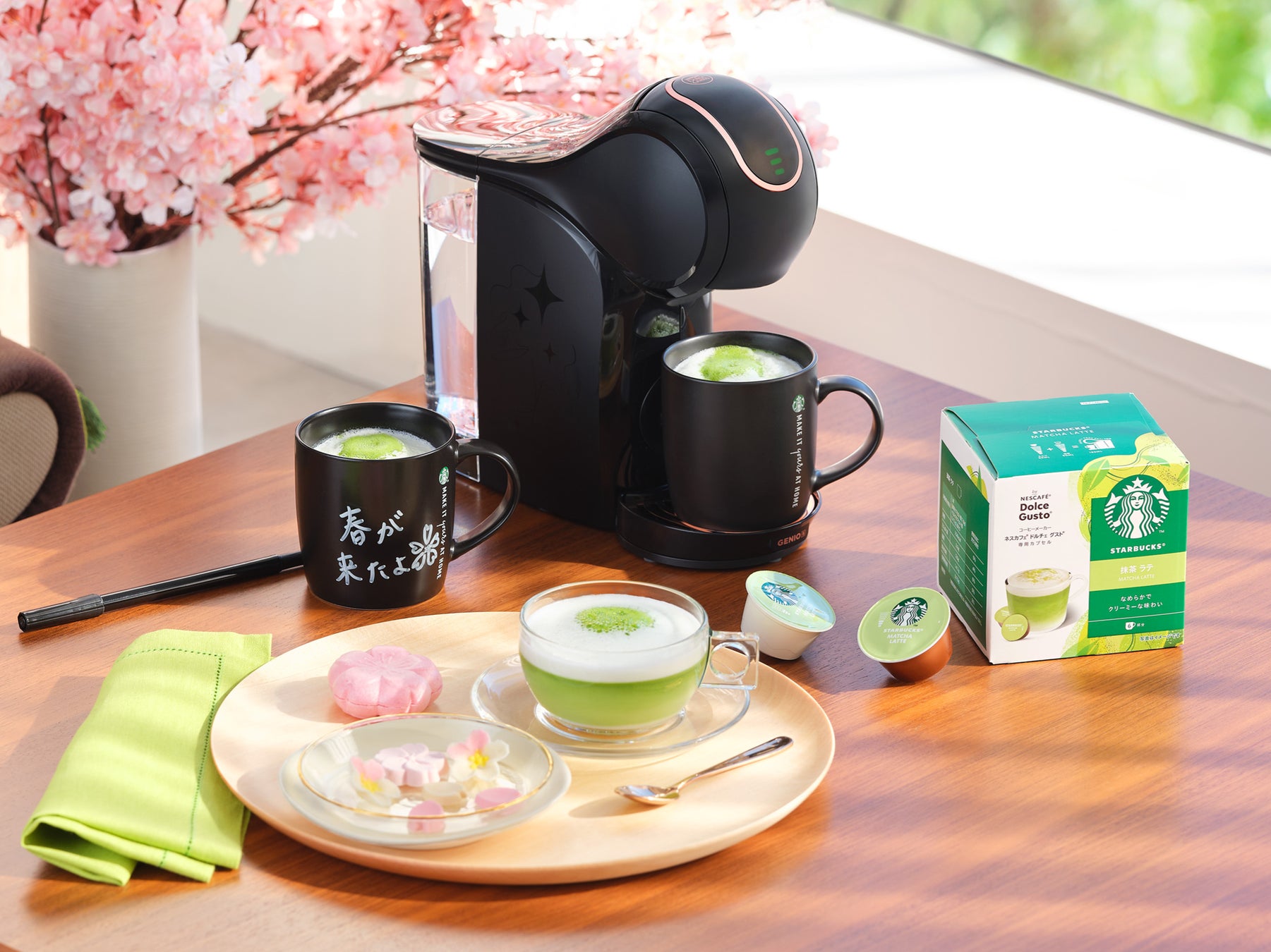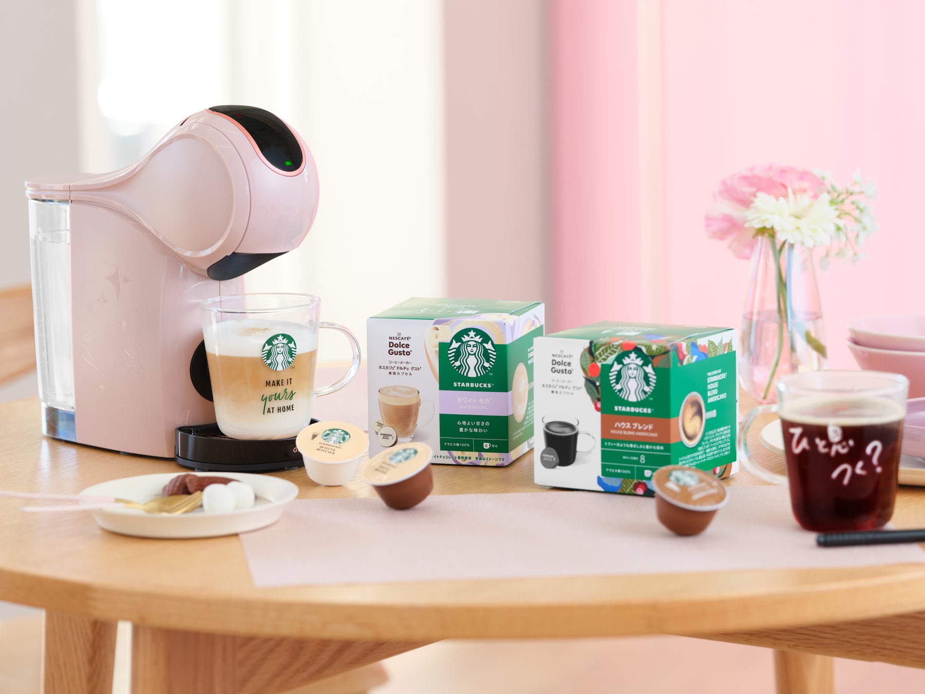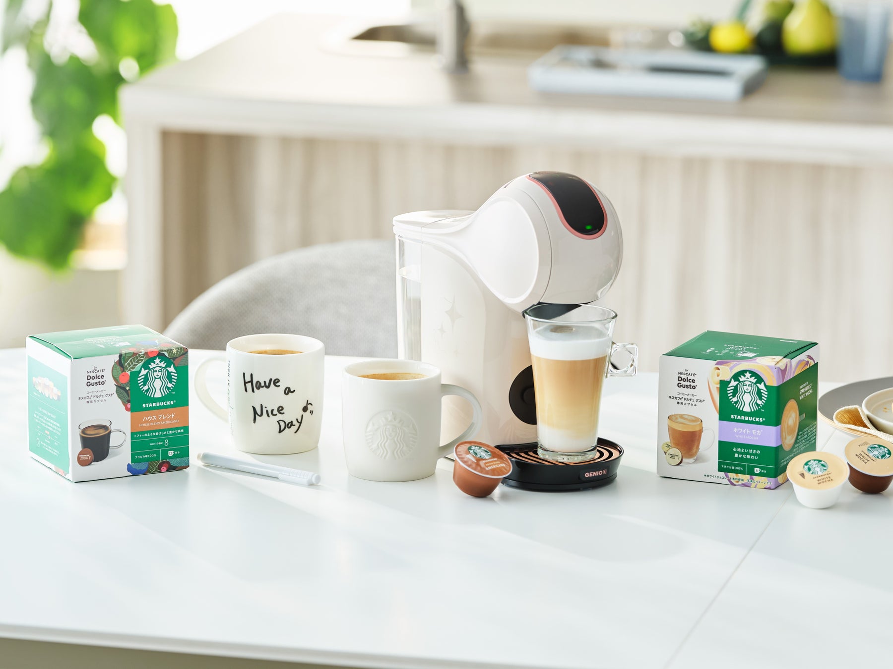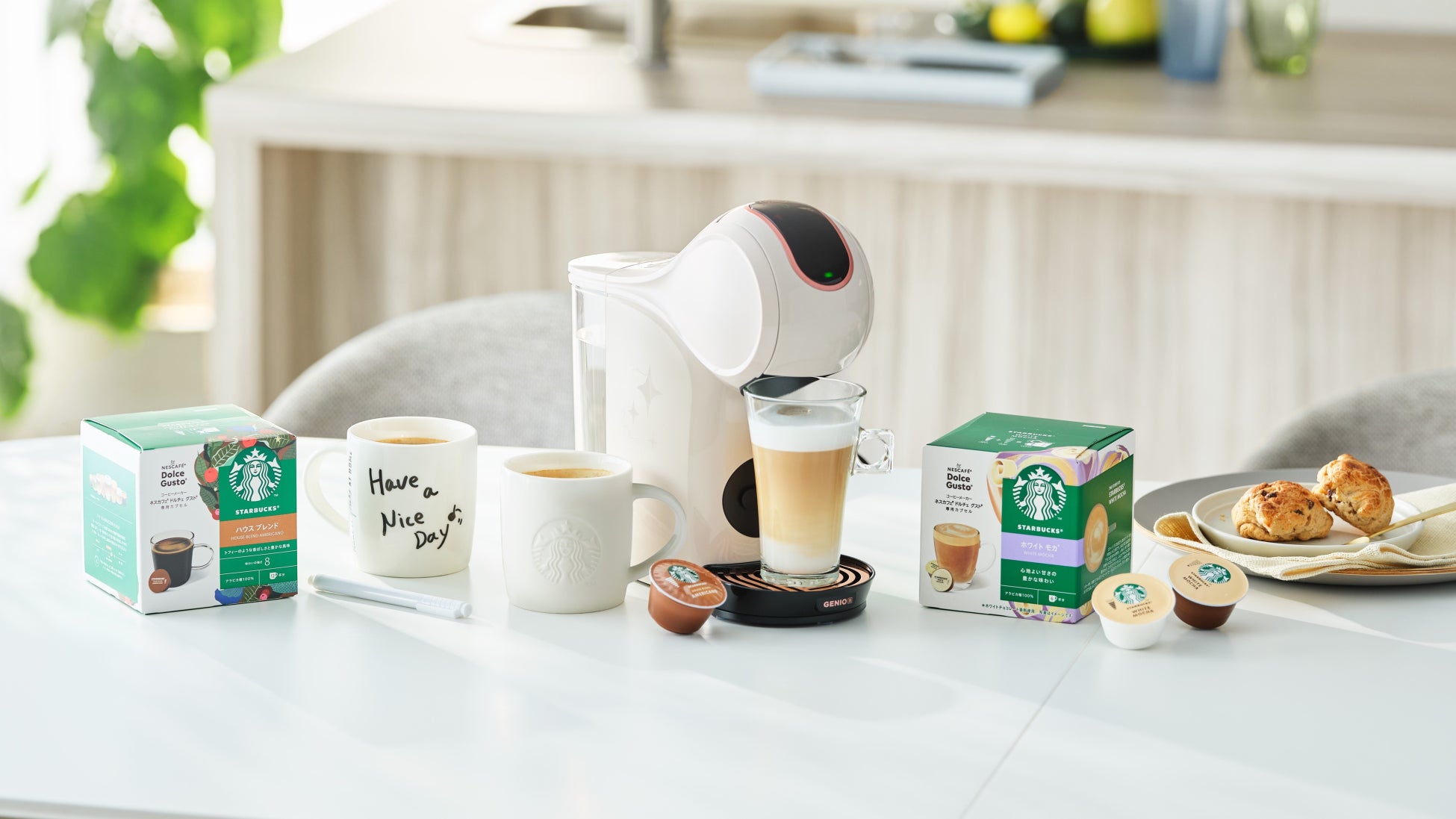 ネスレ日本株式会社(本社:兵庫県神戸市、代表取締役 社長 兼 CEO:深谷 龍彦、以下「ネスレ日本」)は、「おうちが、あなたのカフェになる。」をコンセプトとするコーヒーメーカー「ネスカフェ ドルチェ グスト GENIO S」の限定デザイン「ネスカフェ ドルチェ グスト GENIO S SHARE」に新色「クリームホワイト」を追加し、手書きのメッセージが書けるマグカップ2個、専用ペンが一緒になった特別なセット「ネスカフェ ドルチェ グスト GENIO S SHARE クリームホワイト スターバックス® 体験セット」として3月1日(土)より販売を開始します。