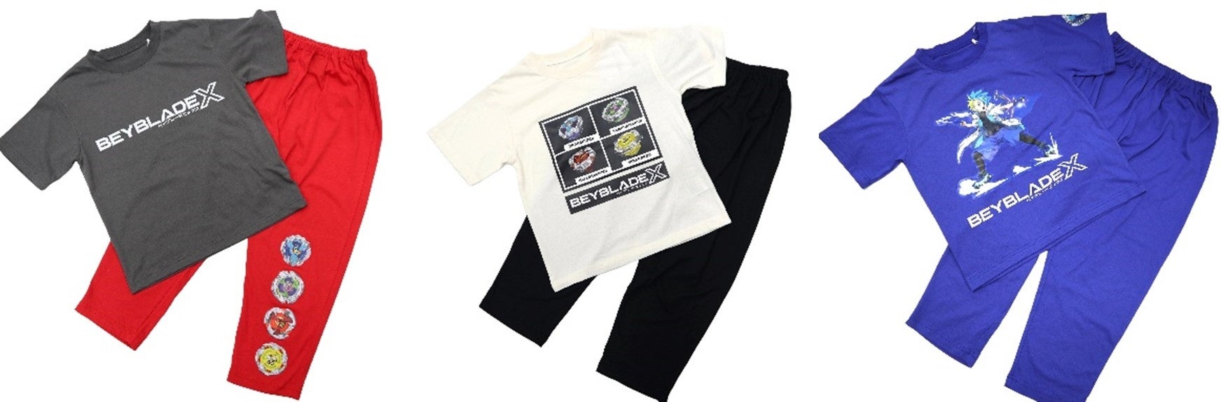 第2弾で販売するのは、Tシャツ(3種類)、キャップ、ショルダーバッグ、パジャマ(3種類)、の計8商品で、「BEYBLADE X」のロゴやベイブレード(コマ)、アニメのイラストを取り入れたデザインとなっています。Tシャツ3種はお子様向けに120cm~160cmの5サイズで展開するほか、うち2種類は大人向けサイズ(M・L)もご用意し、お子様だけでなく大人ファンの方にも着用いただけます。また、シリーズ初登場となるキャップも、お子様だけでなく大人の方にも着用いただけるよう56-58cmサイズを含めた3サイズでご用意いたしました。