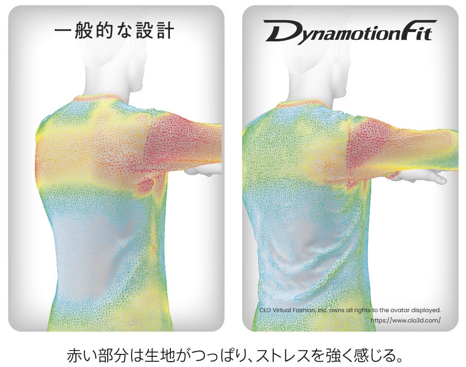 人の動きを3次元CG解析や解剖学をもとに検証し、運動時の動きやすさを追求した『ダイナモーションフィット』を採用。また、メリノウールは1本1本がバネのようなコイル形状をしており、人の動きに沿って伸縮するので、運動時にもストレスフリーな着心地を実現しています。