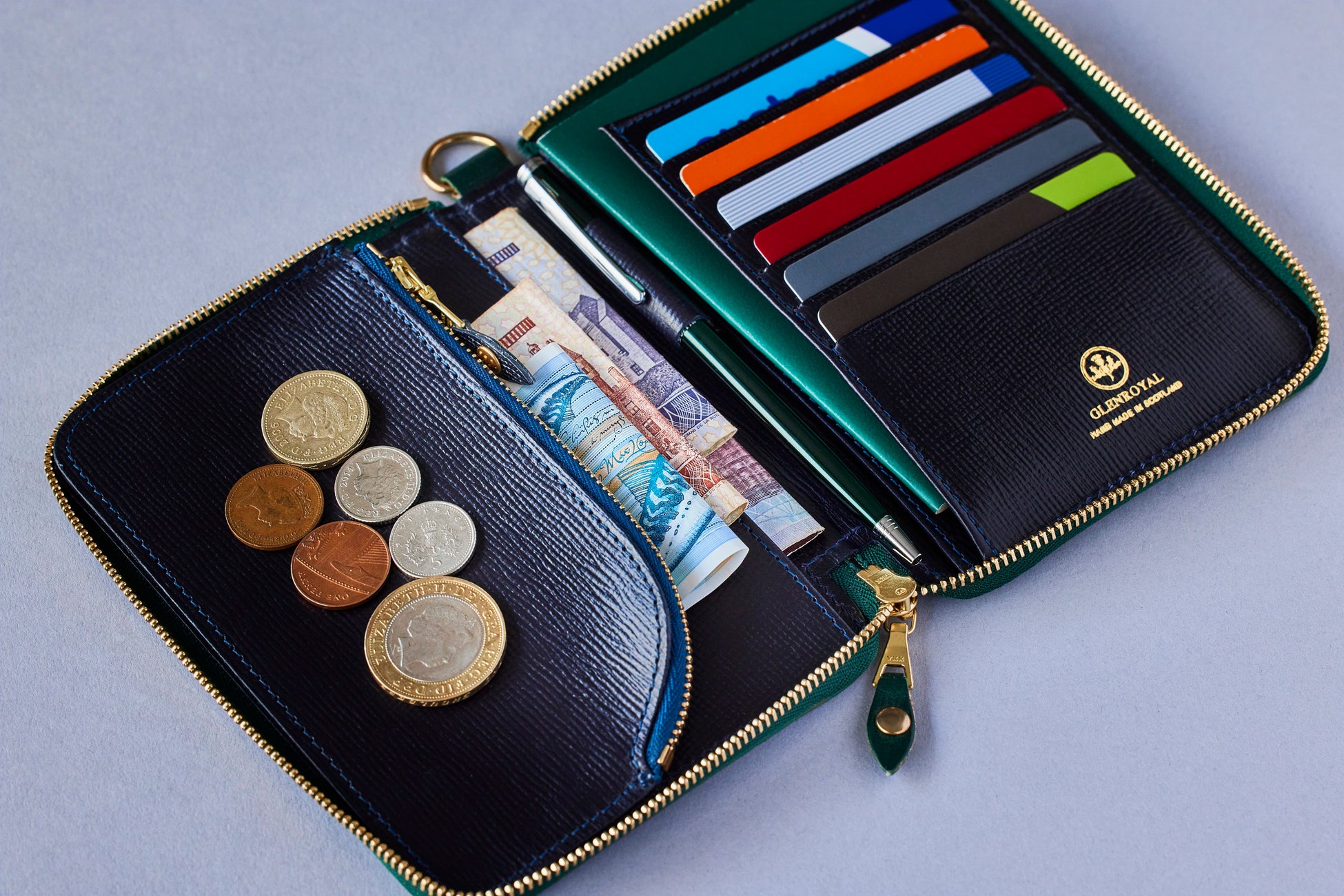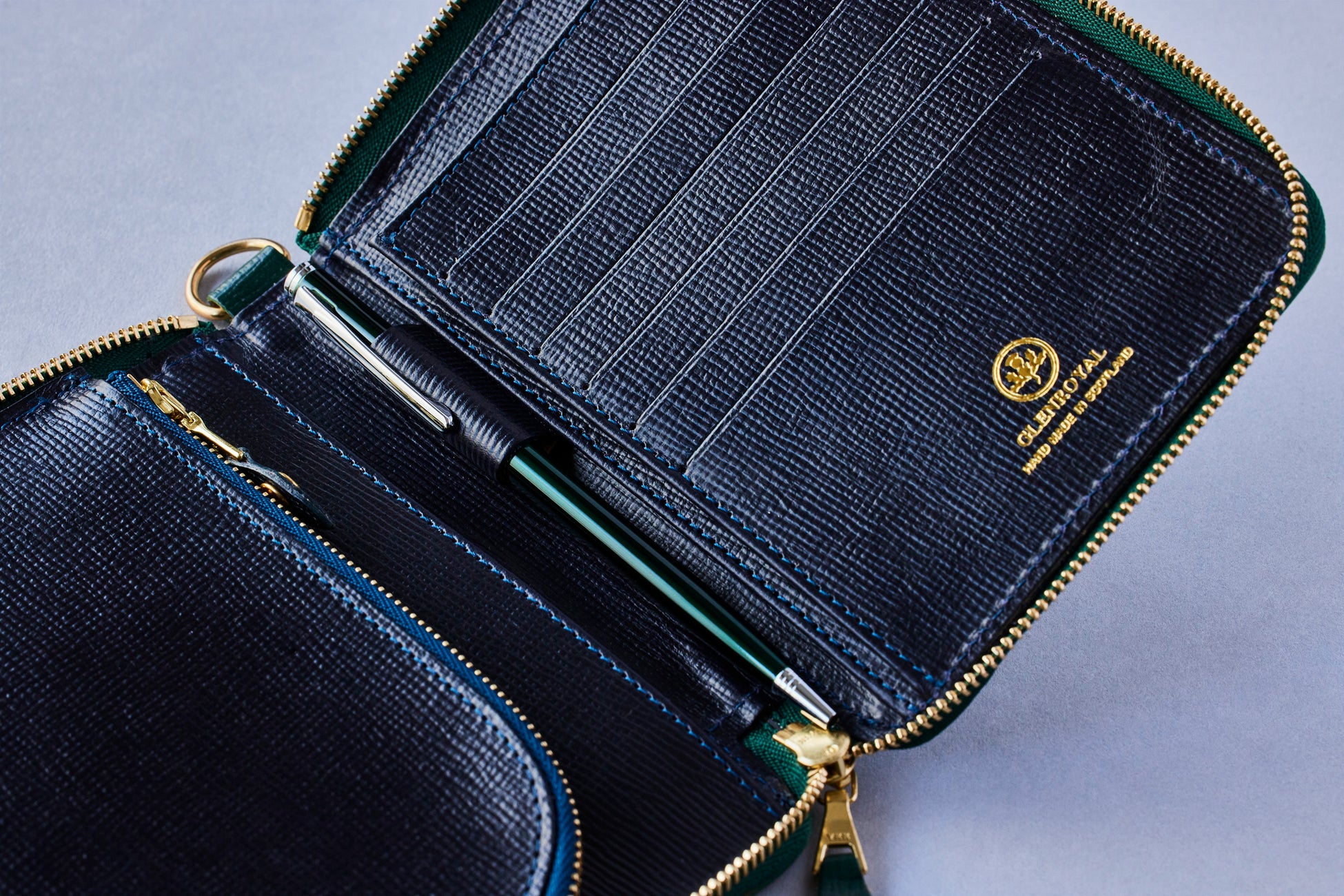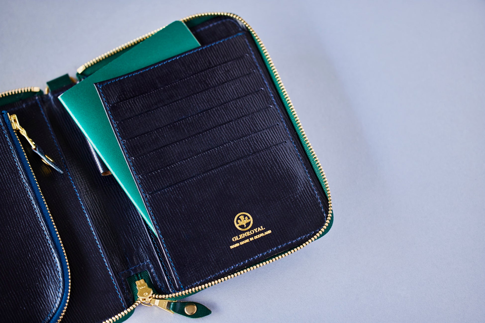 GLENROYAL(グレンロイヤル)の日本公式オンラインショップに、旅行や出張時に活躍してくれるだけでなく、日常でも使い勝手の良いオーガナイザーウォレットが入荷いたしました。エンボス加工が施されたレイクランドブライドルレザーを使用しており、NEW BLACK単色とBOTTLE GREEN×DARK BLUE、GREY×NEW BLACKの計3色展開でロゴはゴールド刻印となっています。