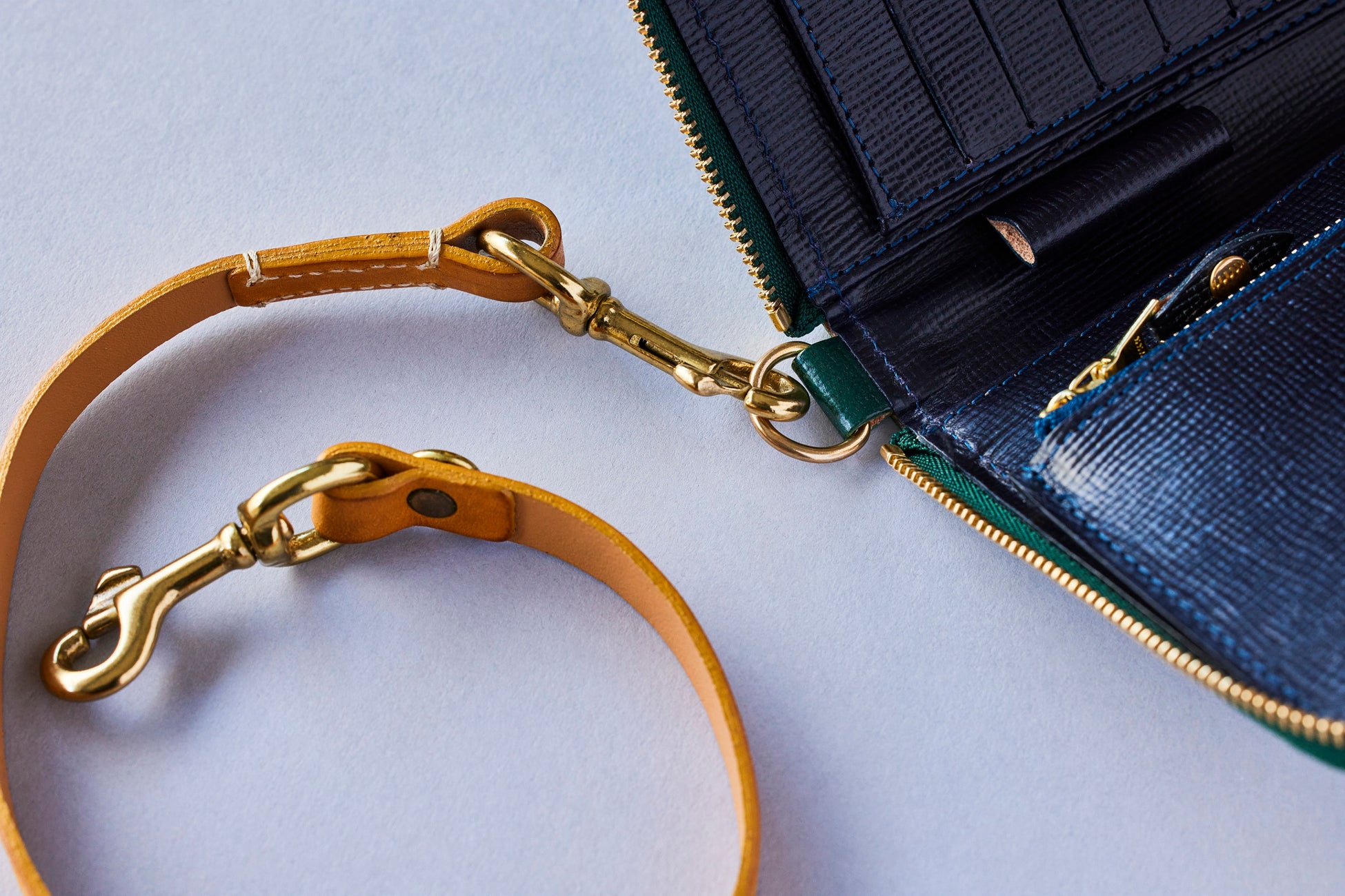 お金やカード類に加えてペンやパスポートも収納可能ながら、手のひらに収まりそうなコンパクトサイズで普段使いとしても十分活用可能。Dリングにウォレットコードを通せば盗難防止にもなり、海外旅行などでも大いに活躍してくれます。