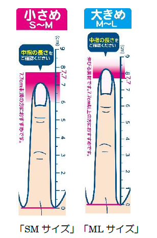 中指の長さ7.7cmを基準に、7.7cm未満の場合は「SMサイズ」、7.7cm以上は「MLサイズ」が手の大きさに合った適正サイズとなります。