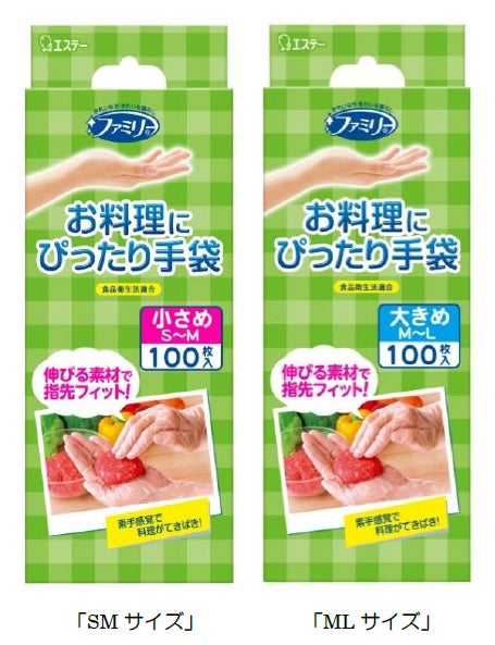 【エステー】素手感覚で使える極薄手タイプの使いきり手袋「ファミリー お料理にぴったり手袋」サイズラインナップを追加して新発売