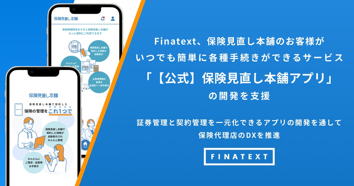 Finatext、保険見直し本舗のお客様がいつでも簡単に各種手続きができるサービス「【公式】保険見直し本舗アプリ」の開発を支援