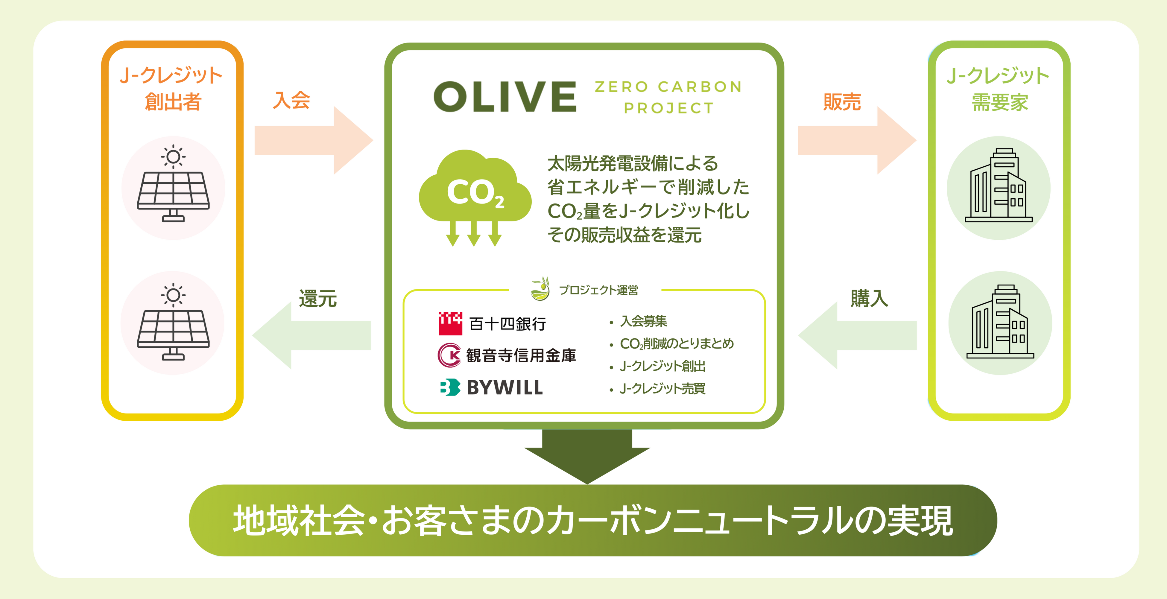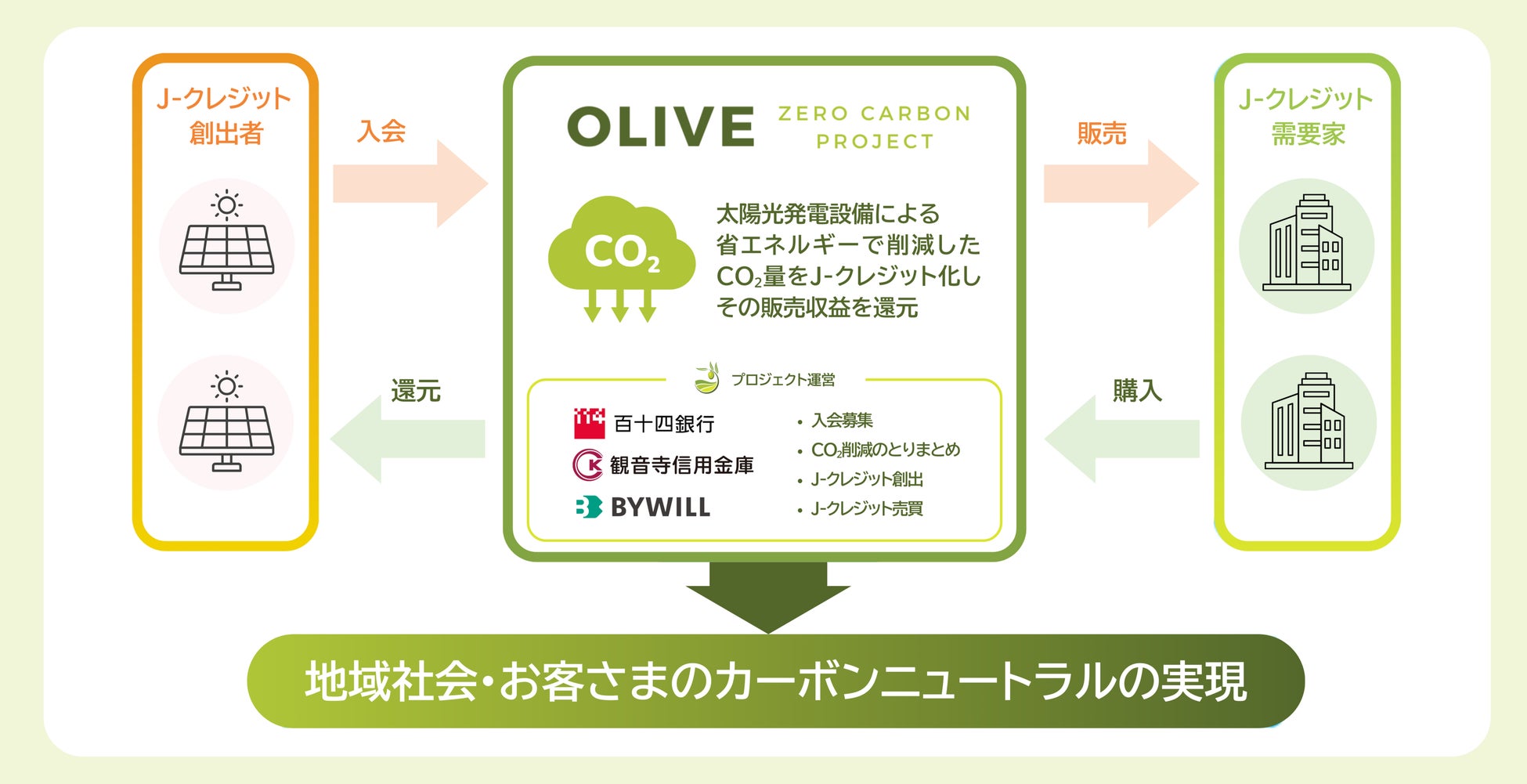 「GXをやりたくなる世界」を目指し、環境価値を活用した経済循環を推進する株式会社バイウィル(本社:東京都中央区、代表取締役社長:下村雄一郎、以下「バイウィル」)が、株式会社百十四銀行(本店:高松市、頭取:森匡史、以下「百十四銀行」)および観音寺信用金庫(本店:観音寺市、理事長:小林浩二)と連携して推進する「オリーブ・ゼロカーボンプロジェクト」について、J-クレジット制度の第68回認証委員会にて正式にプロジェクト登録が完了したことをお知らせします。
