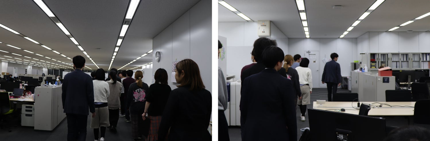 会社見学では、実際に社員が就業中のオフィス内を案内し、将来働くイメージを広げていただきました。