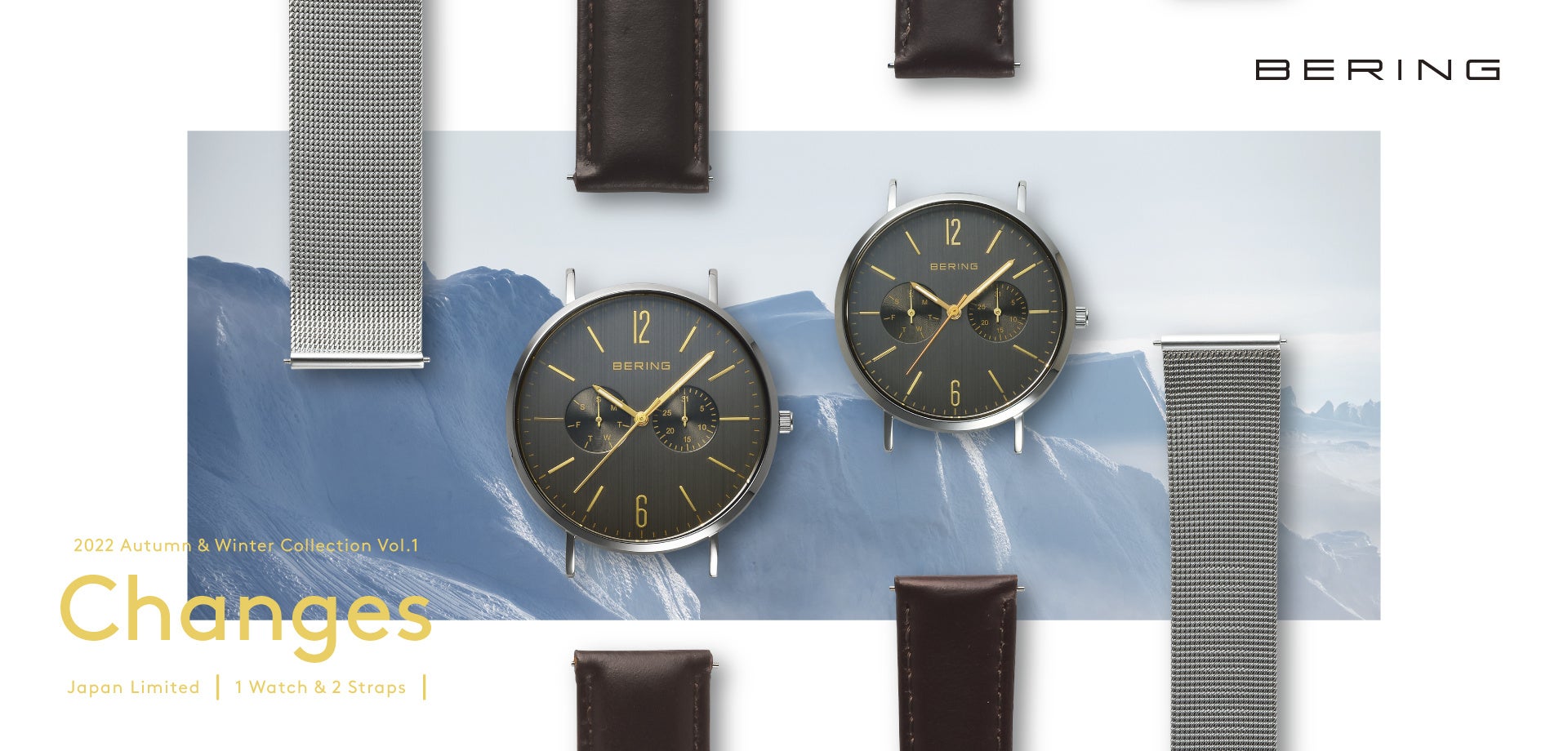 北欧デンマークの腕時計ブランドBERINGが、2本ストラップが付属するChangesシリーズから2022AWシーズンの新色ウォッチを発売。