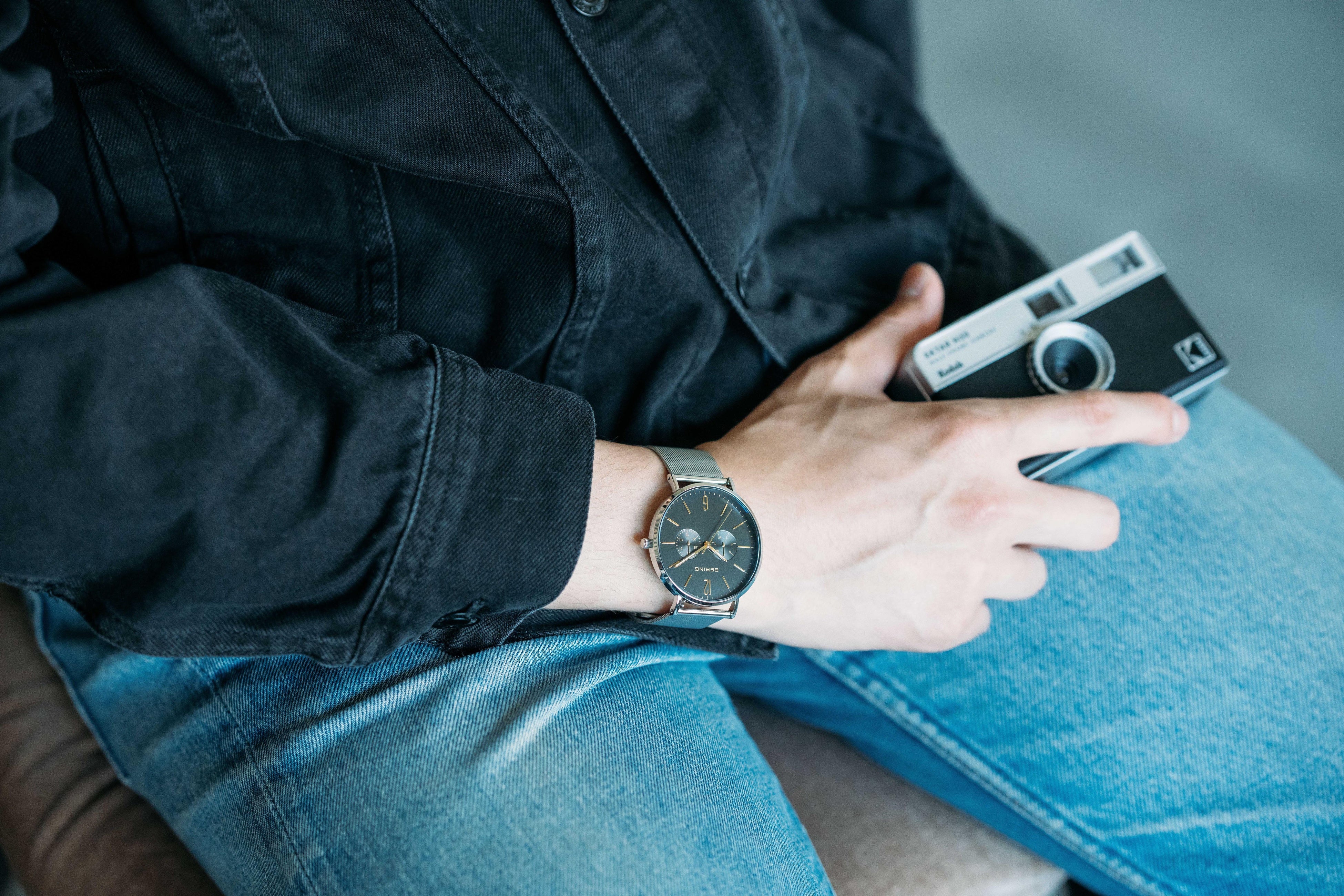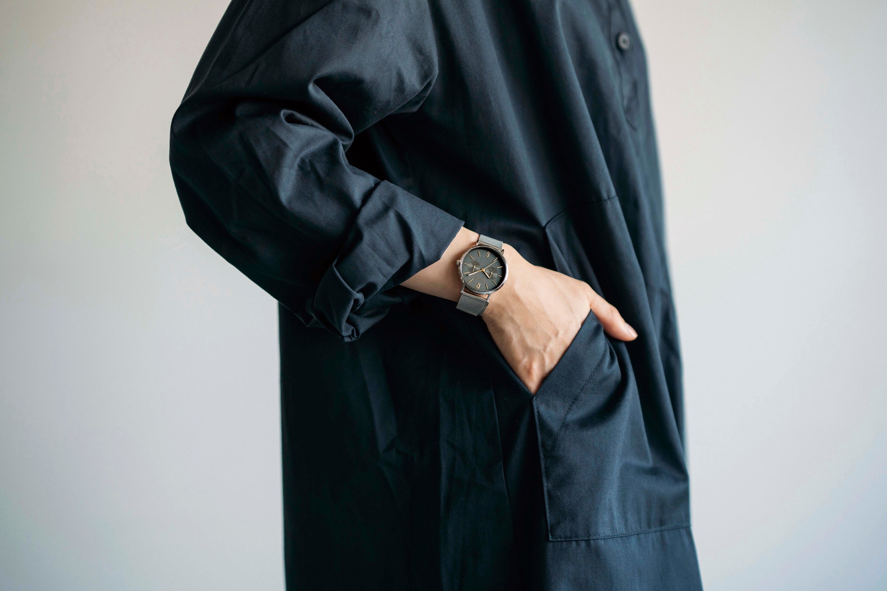 インダイヤルのデイデイト表示、3針、数字とバーを組み合わせたインデックスで、デザイン性を備えながら視認性と使いやすさも実現したアイテムです。
