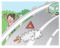 ・停車後は、ハザードランプを点灯するとともに発炎筒や停止表示