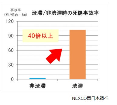 1.渋滞発生時の死傷事故率は、非渋滞時の40倍以上!