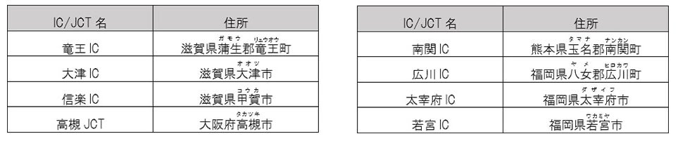 ※詳細な内容は、下記NEXCO西日本ウェブサイトをご確認ください。