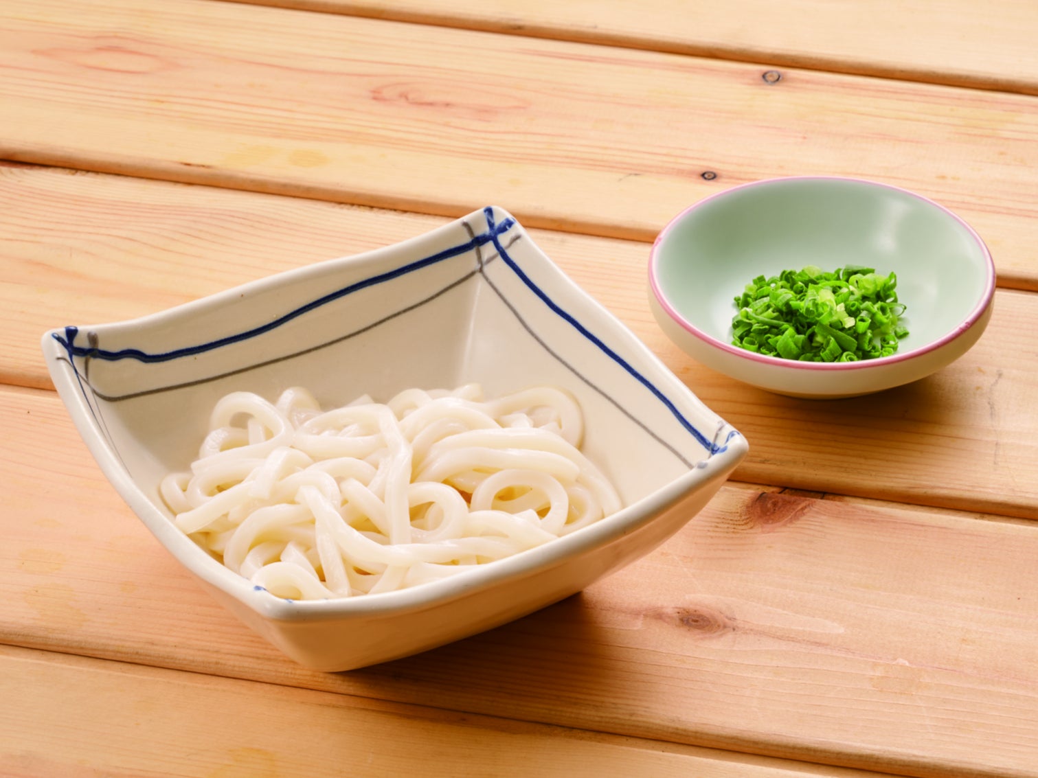 うどんセット(うどん・小ねぎ)、雑炊セット(御飯・生卵・小ねぎ) 各+税込220円