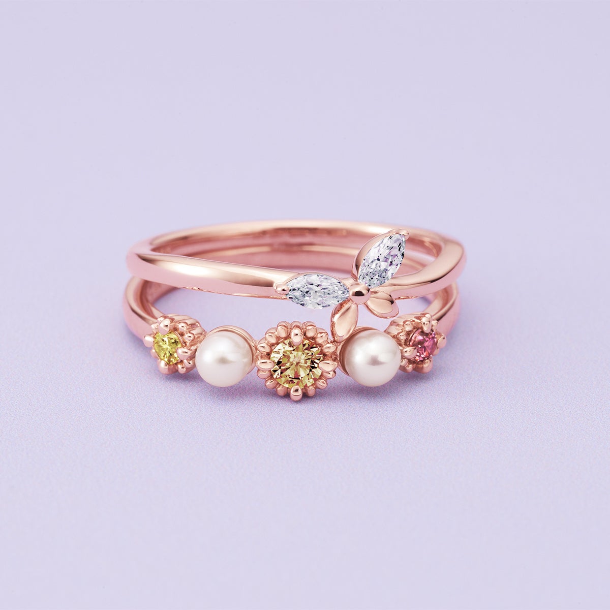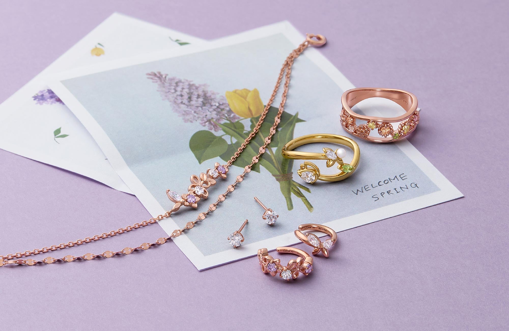 あたたかな季節とともに芽吹く花々と、香りに誘われて舞う蝶たち。新しい季節へとそっと導く、スプリングコレクションです。鮮やかな彩りを纏ったフラワーモチーフは、日常の装いに春の気配を添え、輝く未来へ向かう背中をやさしく押してくれます。春に芽吹く花々、そして“飛躍”を意味する蝶々。その象徴的なモチーフを、繊細なディテールと軽やかなきらめきで表現しました。花が咲くたび、蝶が羽ばたくたび、心もまた前を向く。この春、あなたの毎日にやさしい香りと希望のきらめきを運ぶコレクションです。