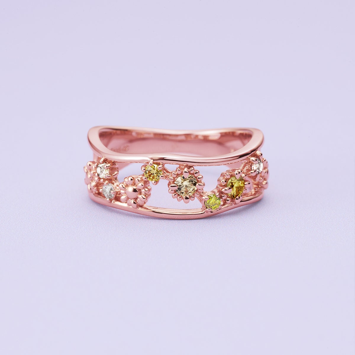 春の陽射しをそのまま閉じ込めたような、華やかなガーベラシリーズ。幾重にも重なる花びらのフォルムを繊細に表現し、カラフルなキュービックジルコニアでみずみずしい彩りを添えました。可憐さの中に、凛とした存在感を宿した“大人かわいい”デザインです。軽やかさと上質感を両立しつつ、ピンク・グリーン・オレンジ・イエローのカラーストーンが、春らしいポジティブなムードを引き立てます。明るく、軽やかに、そして前向きに。春の始まりにふさわしい希望のきらめきを届けるジュエリーです。