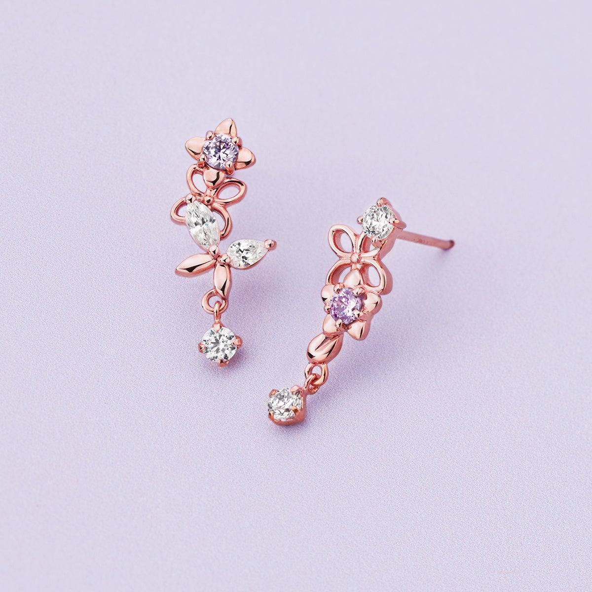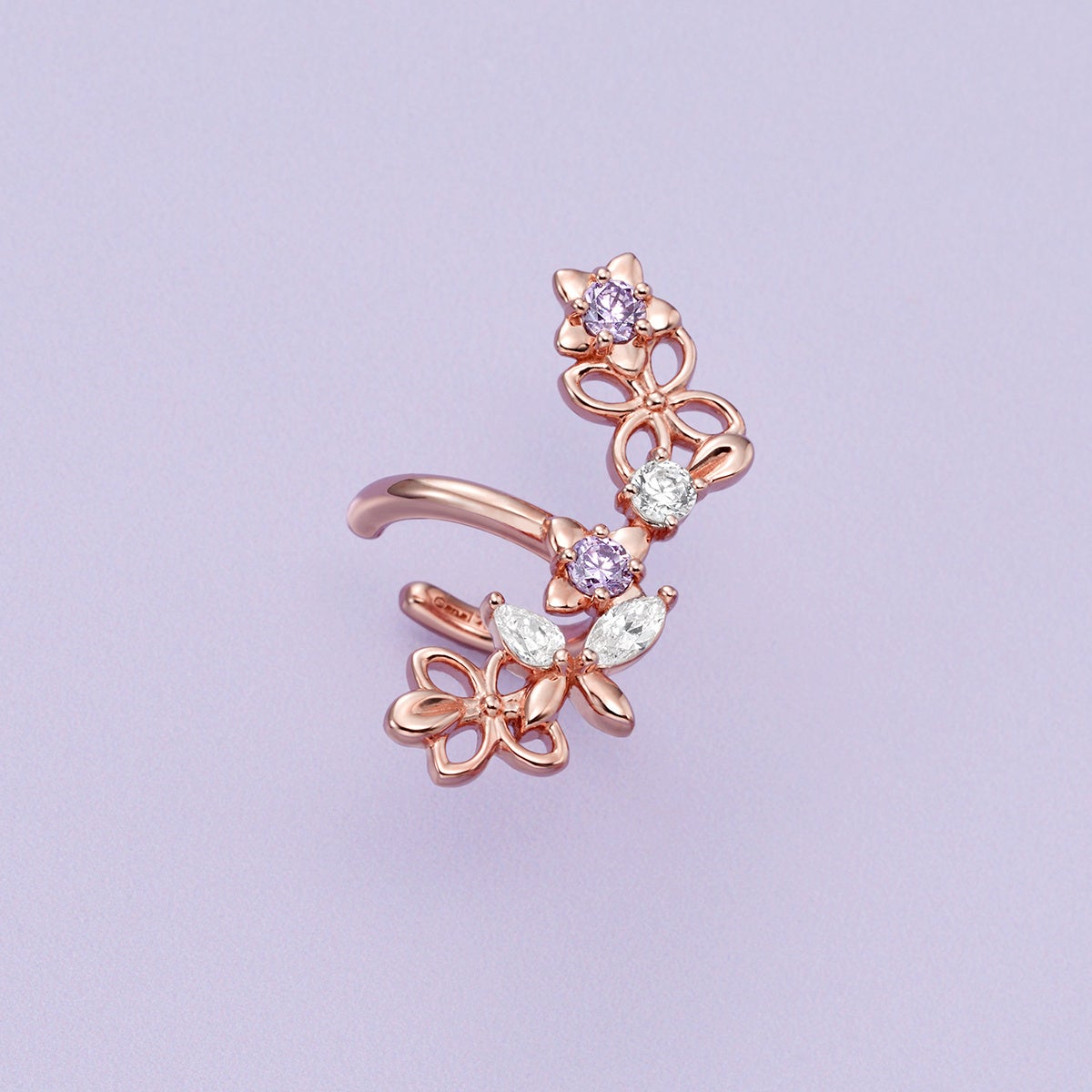 やわらかな春風に揺れるライラックをモチーフにした、可憐で繊細なシリーズ。5枚の花びらを持つ“ハッピーライラック”の意味を忍ばせた特別感のあるデザインは、小さな花々が集まって咲く姿を立体的に表現。透かしや石のきらめきが、軽やかで奥行きのある表情を生み出します。春の訪れを耳元から感じる、軽やかなフローラルジュエリー。新しい季節へ踏み出す気持ちに、そっと寄り添うコレクションです。