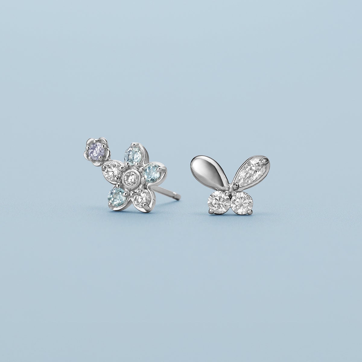 春の光をやわらかく纏う、ギフトにもおすすめの限定アイテム。可憐に咲くネモフィラや、軽やかに舞う蝶をモチーフに、透明感あふれるストーンのきらめきを繊細にあしらいました。小ぶりで日常使いしやすいデザインから、花のフォルムを立体的に表現した存在感のあるトップまで、春の装いに寄り添うバリエーションが揃います。