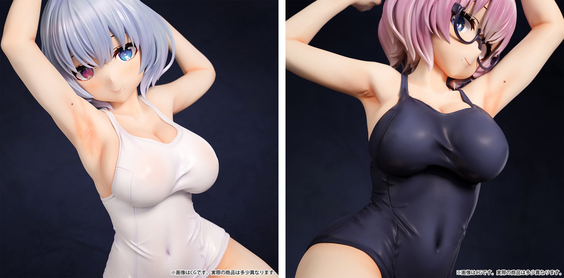 ほんのり肌が透けた白スク水が眩しいお姉ちゃん「マリン」と、身体のラインや陰影が楽しめる紺色スク水姿の妹ちゃん「ルビィ」。飾りやすいサイズ感の1/6スケールと、最新技術によりクオリティと迫力が増した〈追視アイ仕様〉の1/4スケールをラインナップしました。公式ショップ限定セットでは、お得な特別価格にてご予約受付中です。