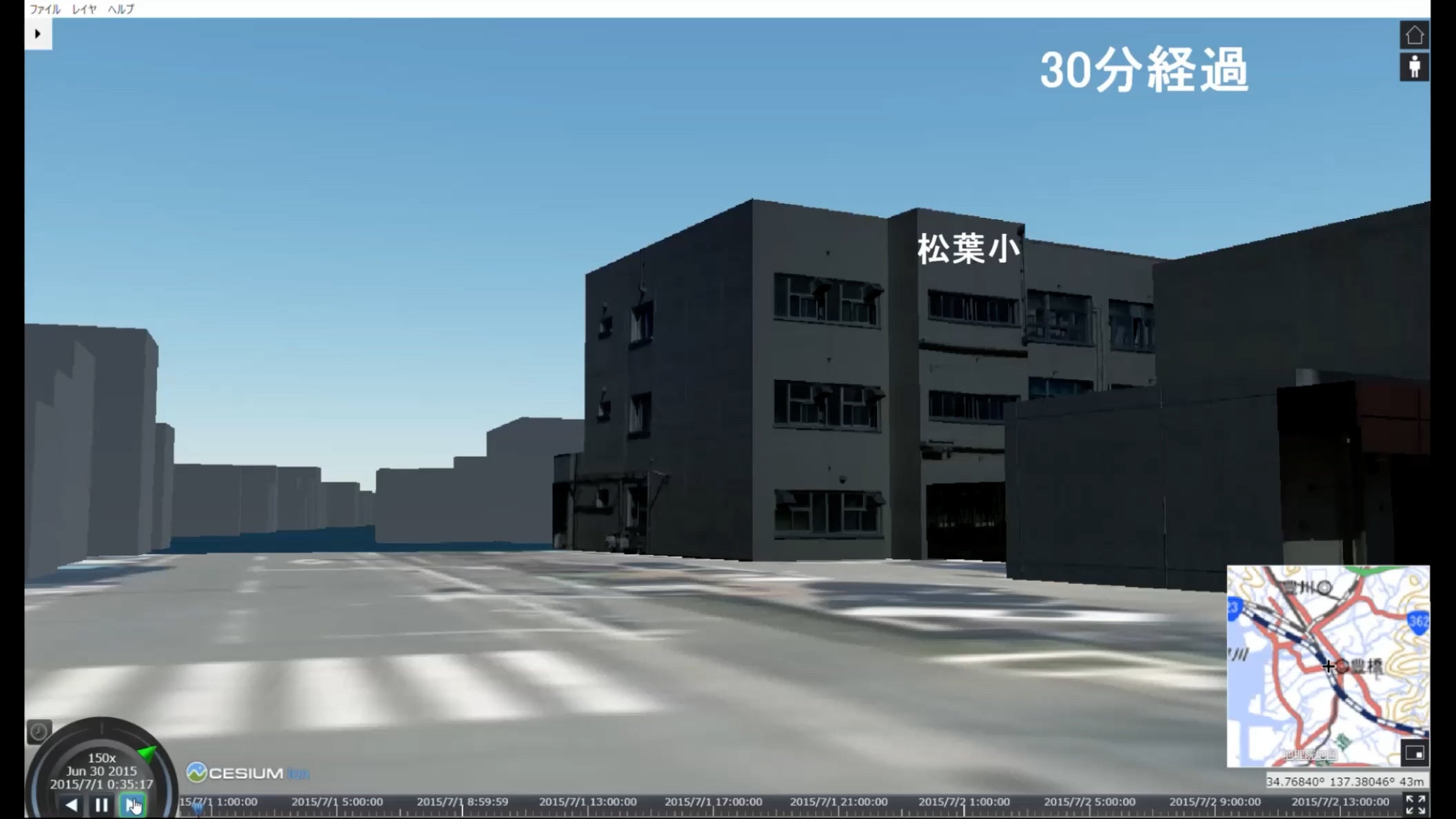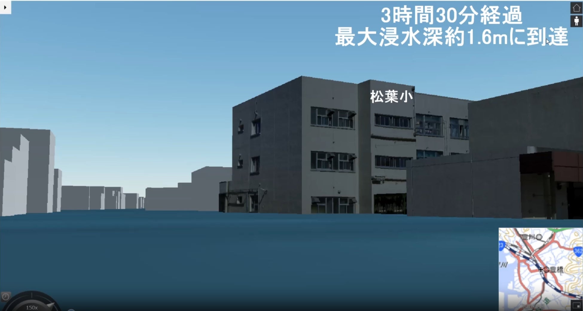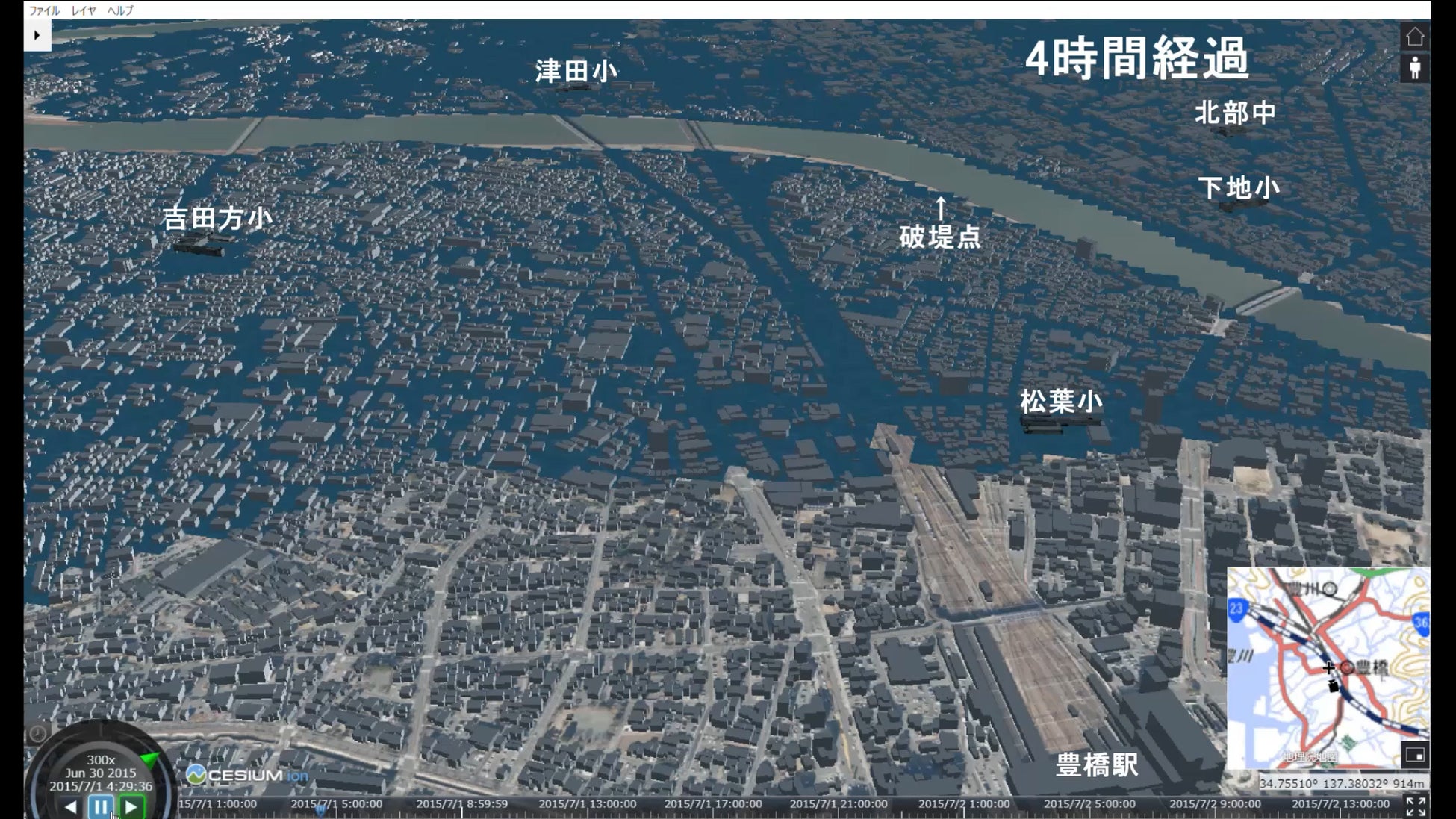 愛知県で初の試み!洪⽔の時系列シミュレーションを3D都市モデル上で再現